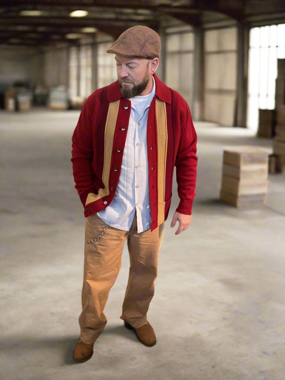 For a look that’s both effortless and eye-catching, team this cardigan with sleek leather boots and a vintage-inspired watch. Men can add a rugged touch with a simple leather bracelet or a patterned scarf, while women might opt for bold earrings or a narrow belt to accentuate the waist. Keep your accessories subtle but impactful—after all, this cardigan does most of the talking!
