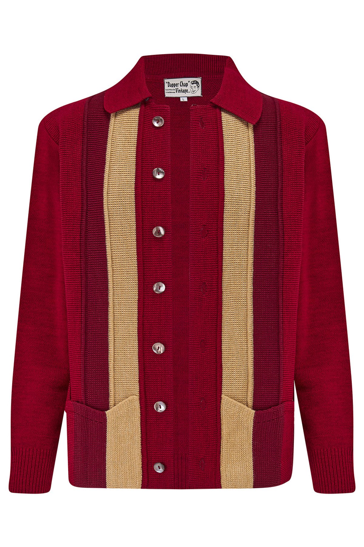 The Arthur Mens Button Front Knitted Shirt Cardigan With Pockets In Red.. 1950s Vintage Menswear