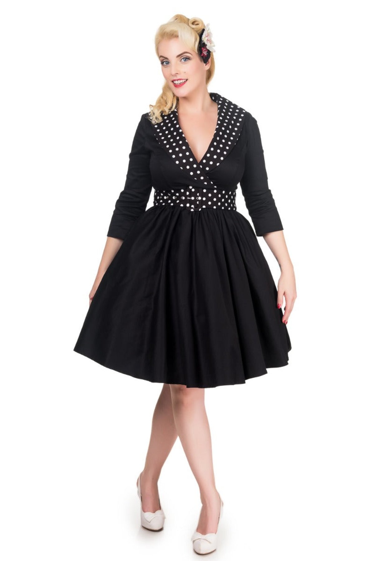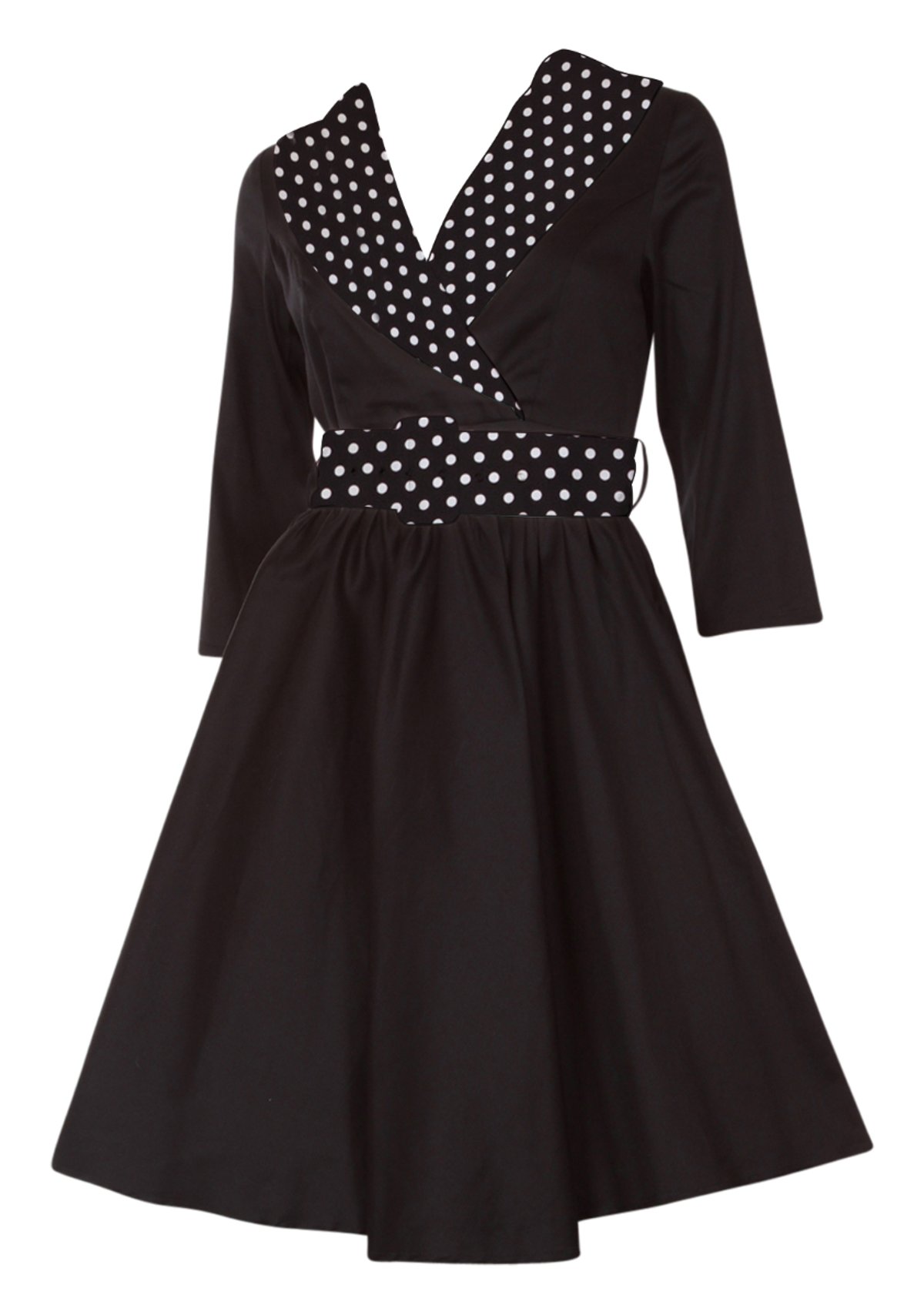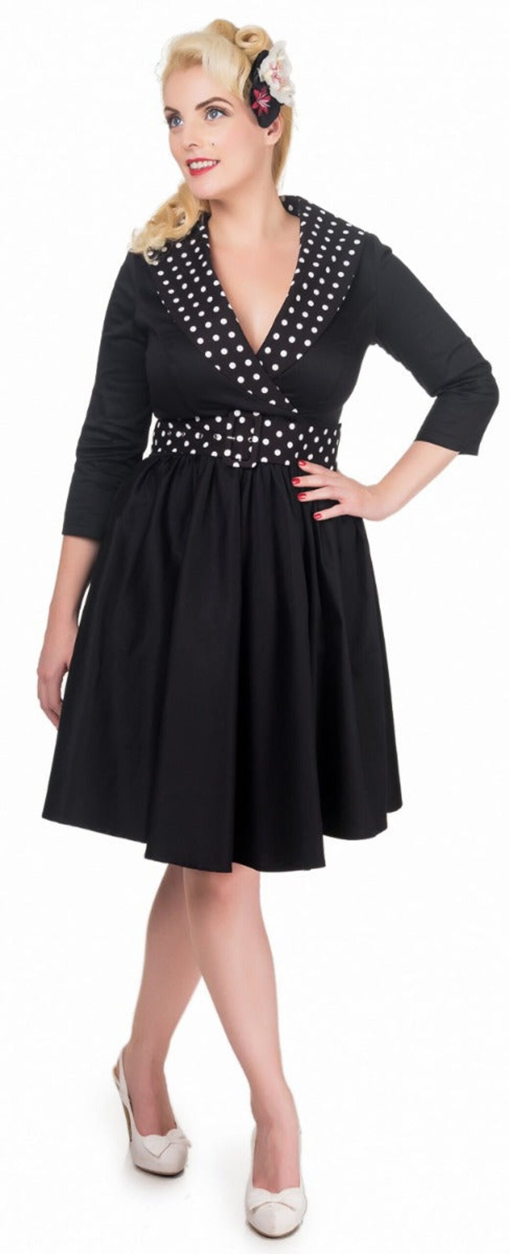 Tiffany 50's Coat Dress in Black White Polka Dots  Shop now at Kitty Darling