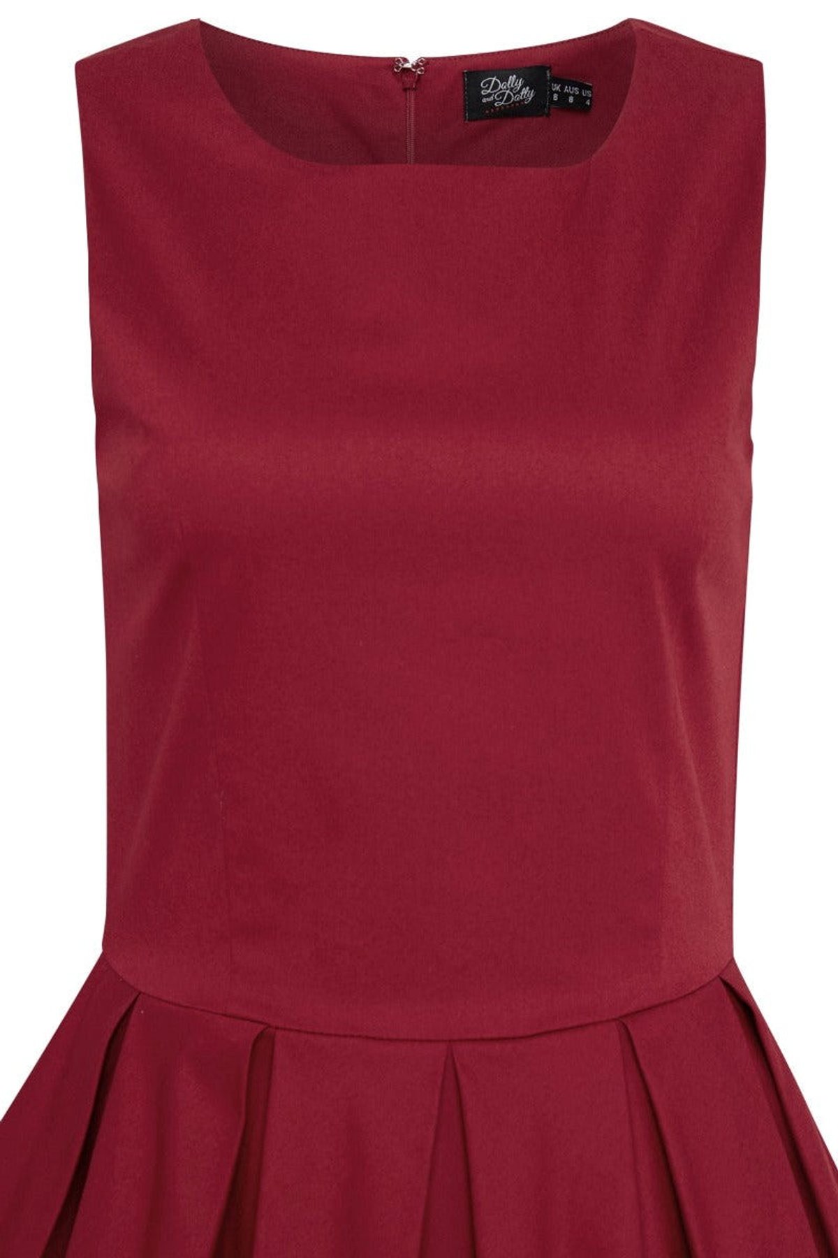 Lola Stylish 50’s Retro Swing Dress With Pockets in Burgundy