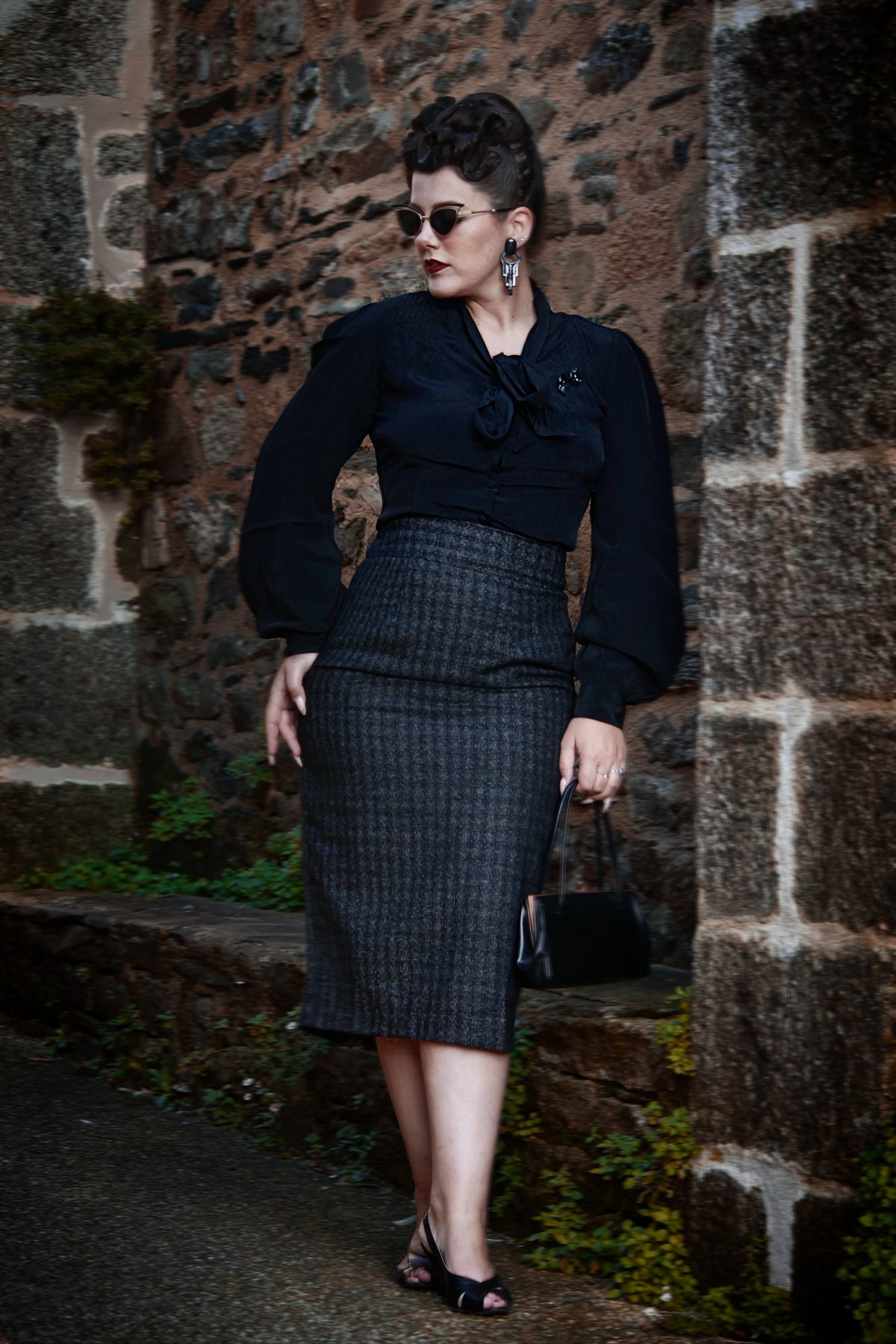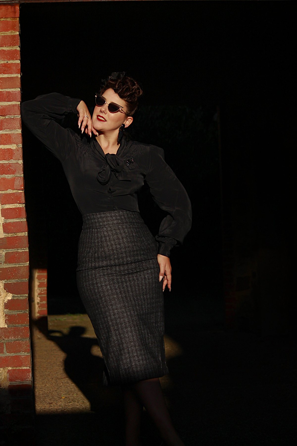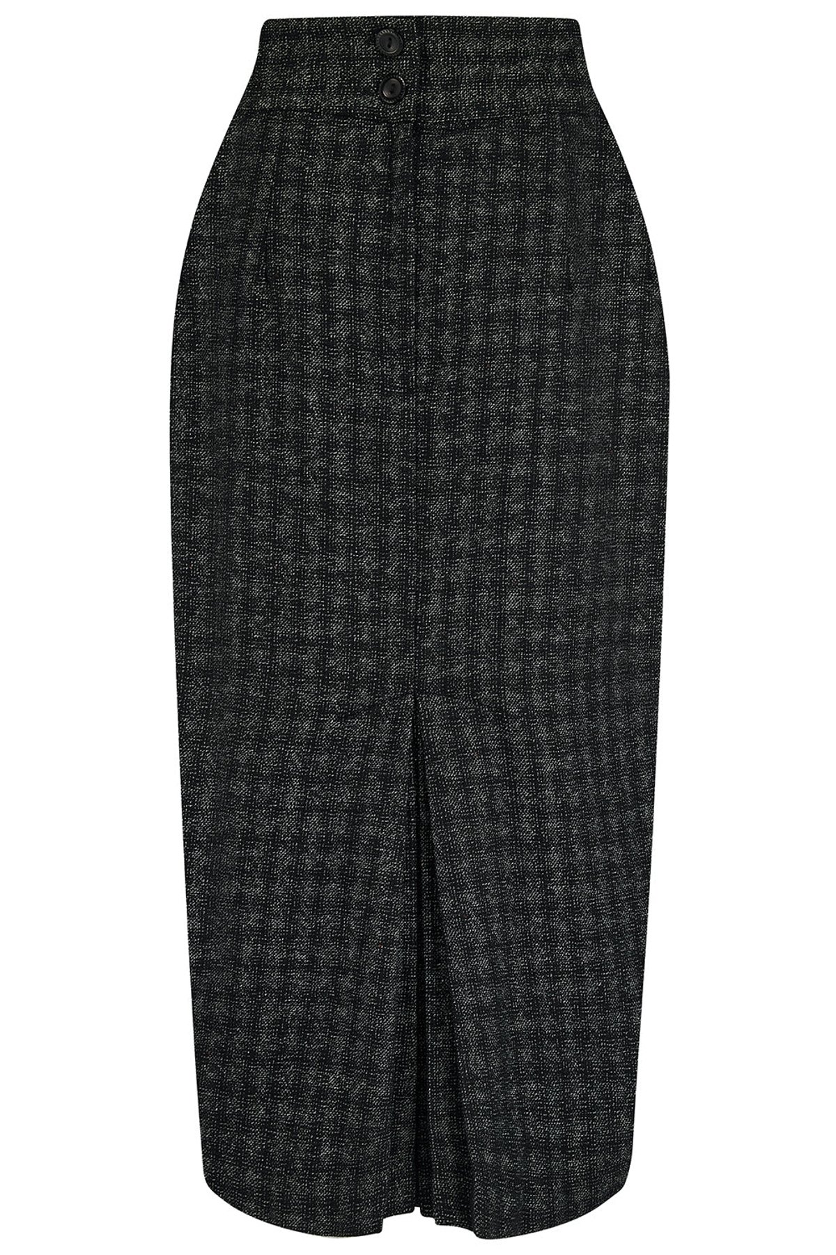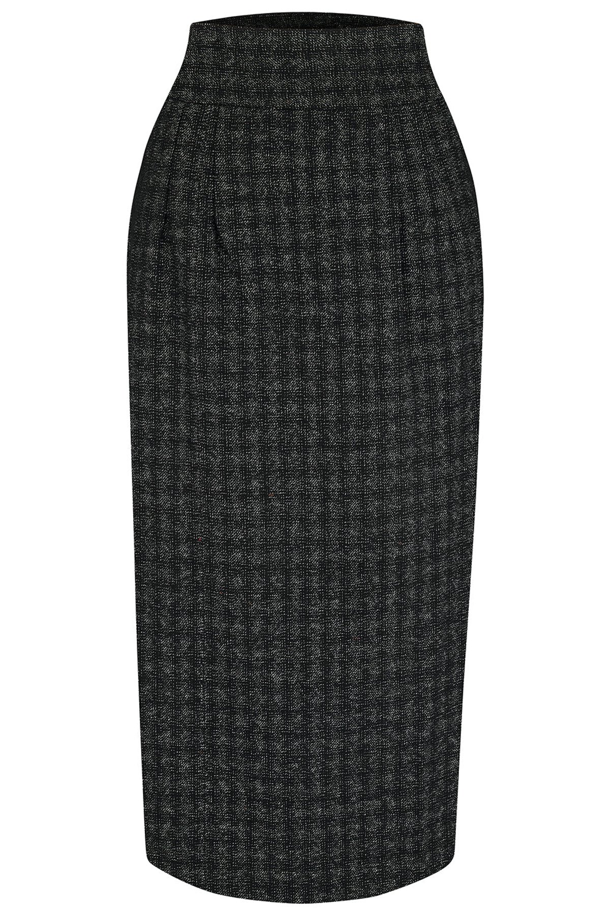 Unleash your inner vintage vixen with the RnR Luxe Range Jitterbug Pencil Skirt — where classic checkered charm meets modern sophistication. The sleek silhouette, crafted from luxurious black and grey atomic fleck wool, offers a purrfect blend of timeless elegance and playful attitude. The kick-pleat at the back adds a dash of flirty movement, inviting you to twirl and strut with feline finesse. Whether you're dressing for a retro-inspired soirée or simply want to turn heads on the city streets, this skirt promises to keep your style game claws-down gorgeous.