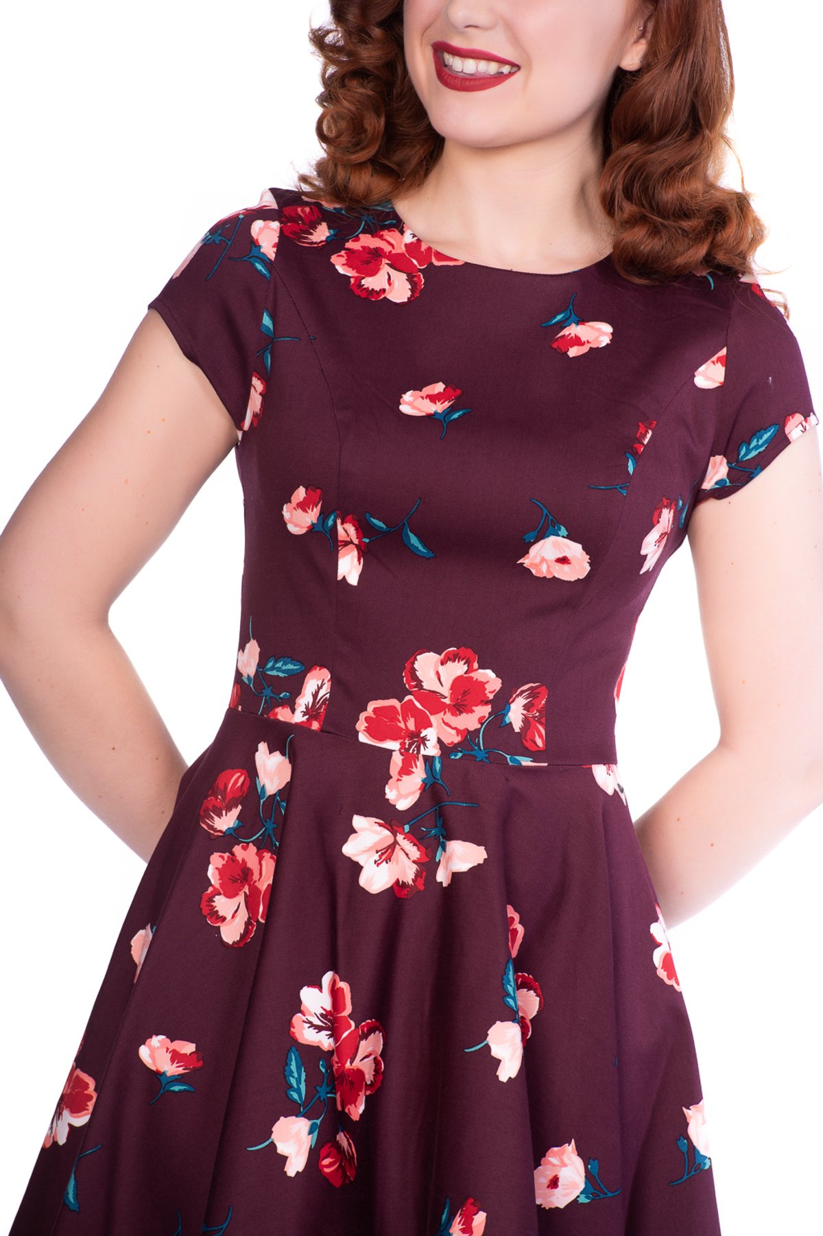 Get ready to turn heads in the Abigail Dress—a true showstopper that’s as playful as it is chic. With its vintage-inspired silhouette and enchanting floral pattern, this piece drips with retro glamour while maintaining a modern, claws-down gorgeous vibe. The rich burgundy and pink hues dance together, creating a look that’s both irresistible and nostalgic, perfect for those who love a hint of glamour with every twirl.