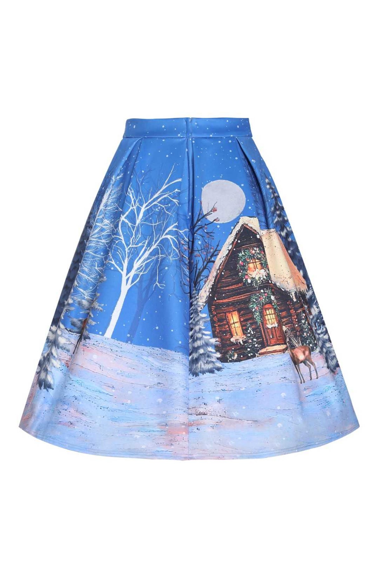 Aisley Blue Reindeer Pleated Midi Skirt  Shop now at Kitty Darling