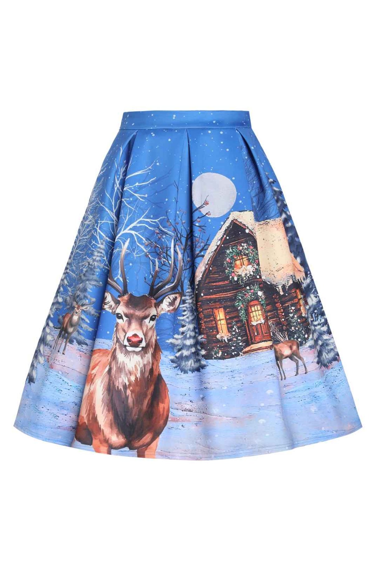 Introducing the Aisley 🦌Blue Reindeer Pleated Skirt🌀. Boldly step into a whimsical winter wonderland, feel your spirit twirl in time with your skirt, and let those around you catch glimpses of the enchanting reindeer winter scene adorning your outfit.