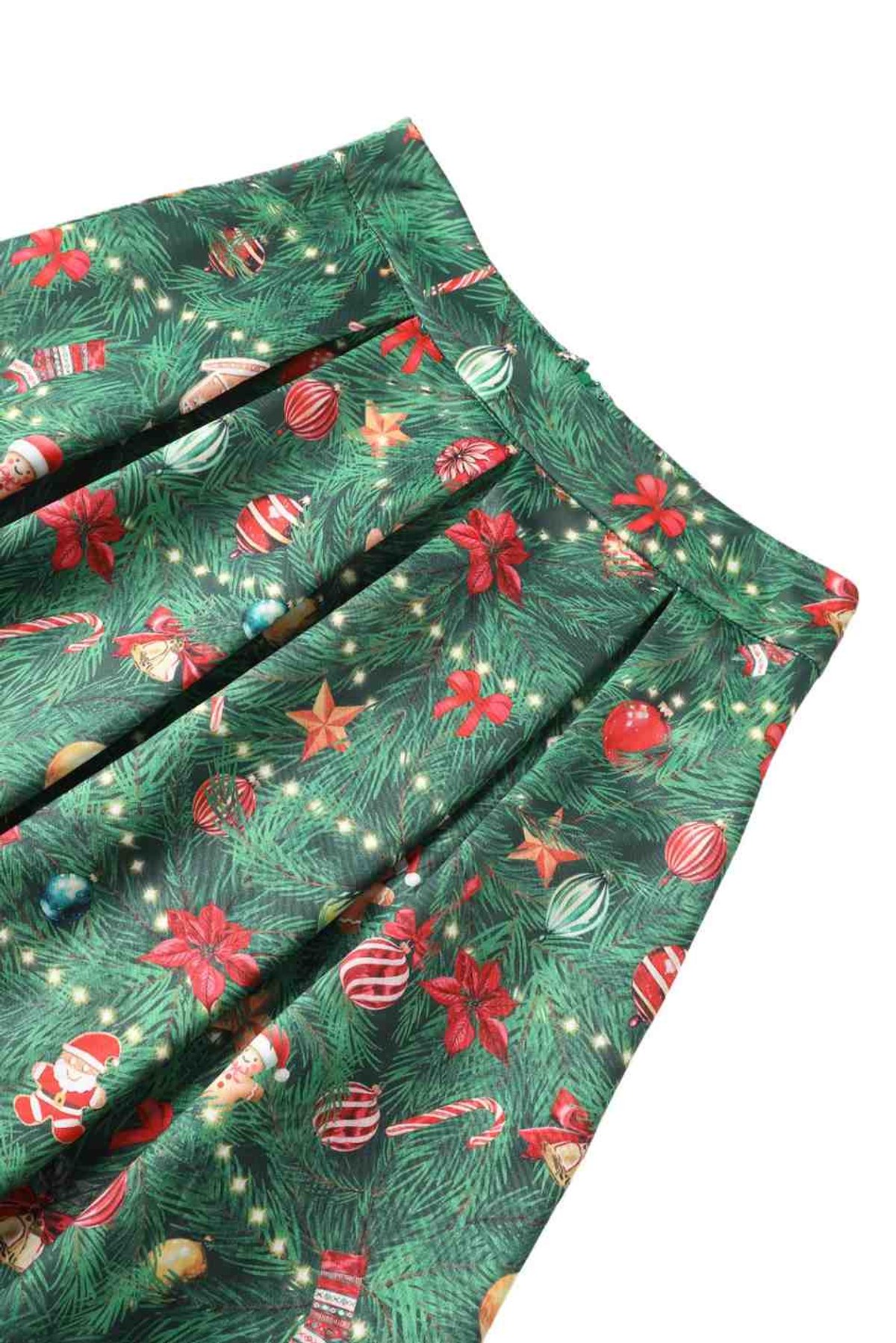 Aisley Green Christmas Trees Pleated Midi Skirt