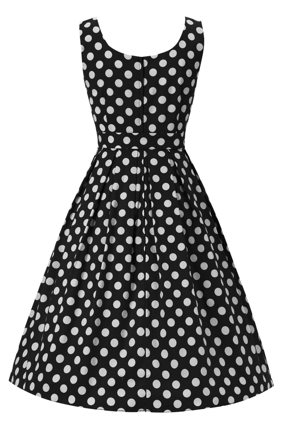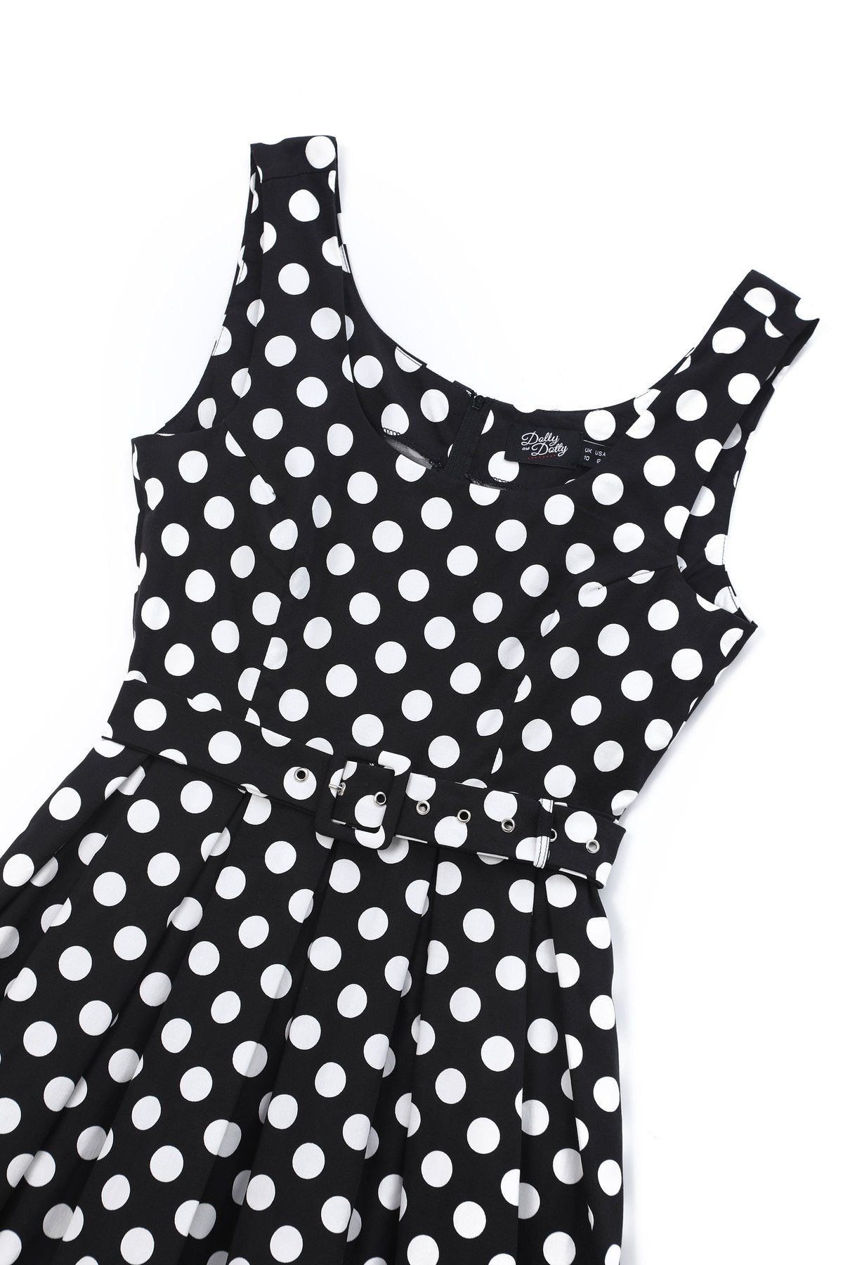 Step back in time with a zestful twist in our delightful Amanda Black Polka Dot Dress 🎉. We’ve spun some vintage magic for all those retro-lovers out there. This dress is a sleeveless wonder, painted with a canvas of stark black and sprinkled with playful white polka dots ⚫⚪.