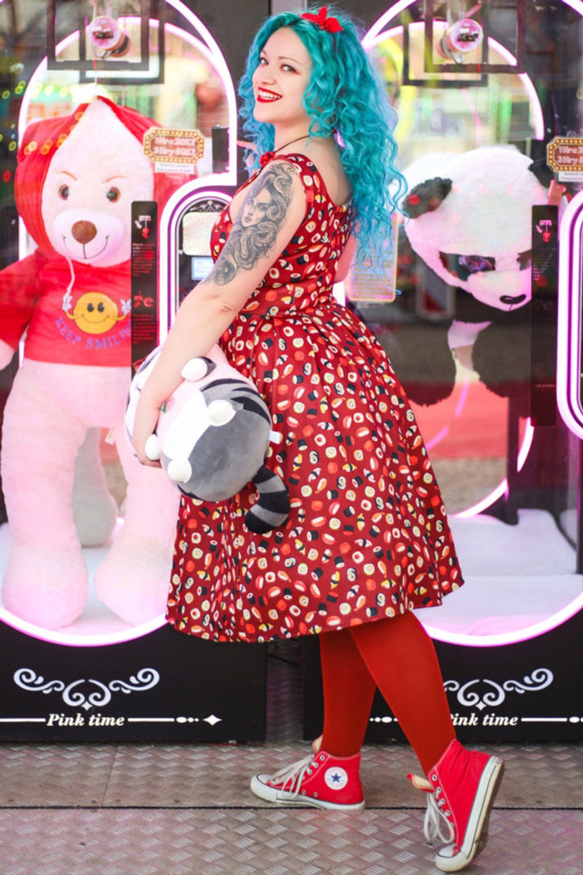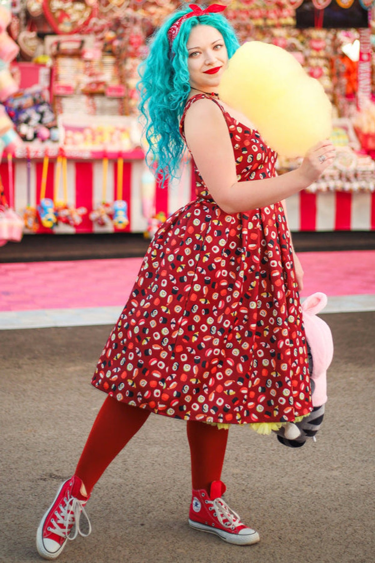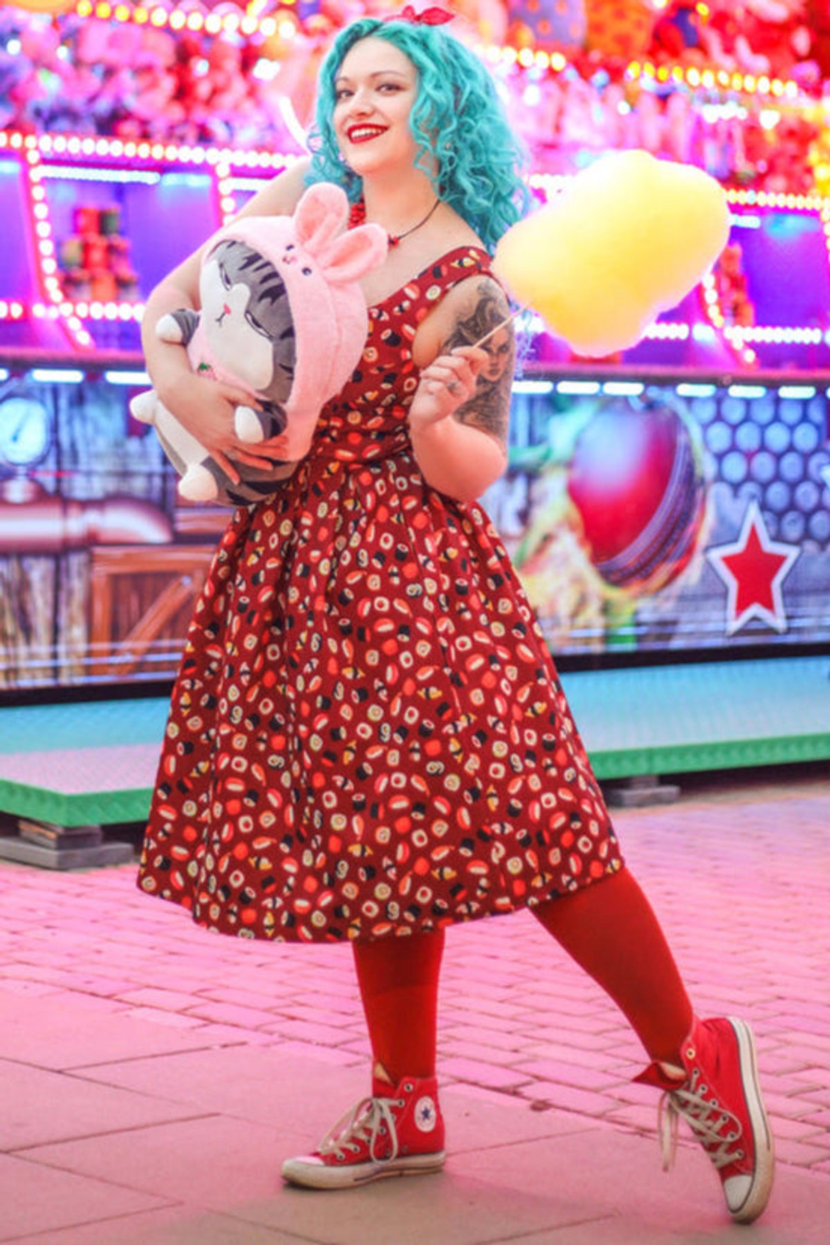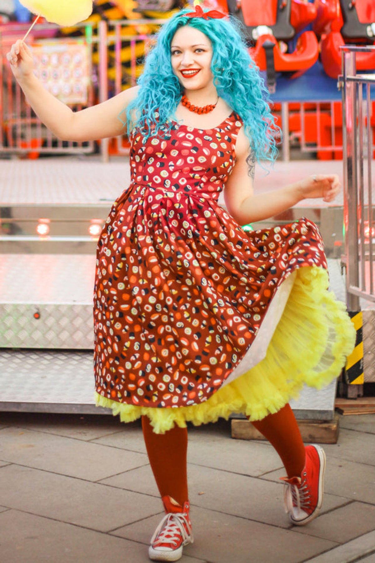 Unleash your fun side with the Amanda Burgundy Quirky Sushi Print Dress—a true showstopper that effortlessly blends playful charm with chic sophistication. The rich burgundy hue serves as the purrfect backdrop for the whimsical sushi print, making this dress a delightful statement piece. Its flared skirt swirls with every move, giving you that irresistible sense of movement and flair, while the stretchy fabric ensures you stay comfy enough to conquer your day in style. The fitted waistline accentuates your curves, and the sleeveless design keeps things breezy and light. Whether you're feeling mischievous or just want to make a subtle splash, this dress is your new go-to for fun, fashionable moments.