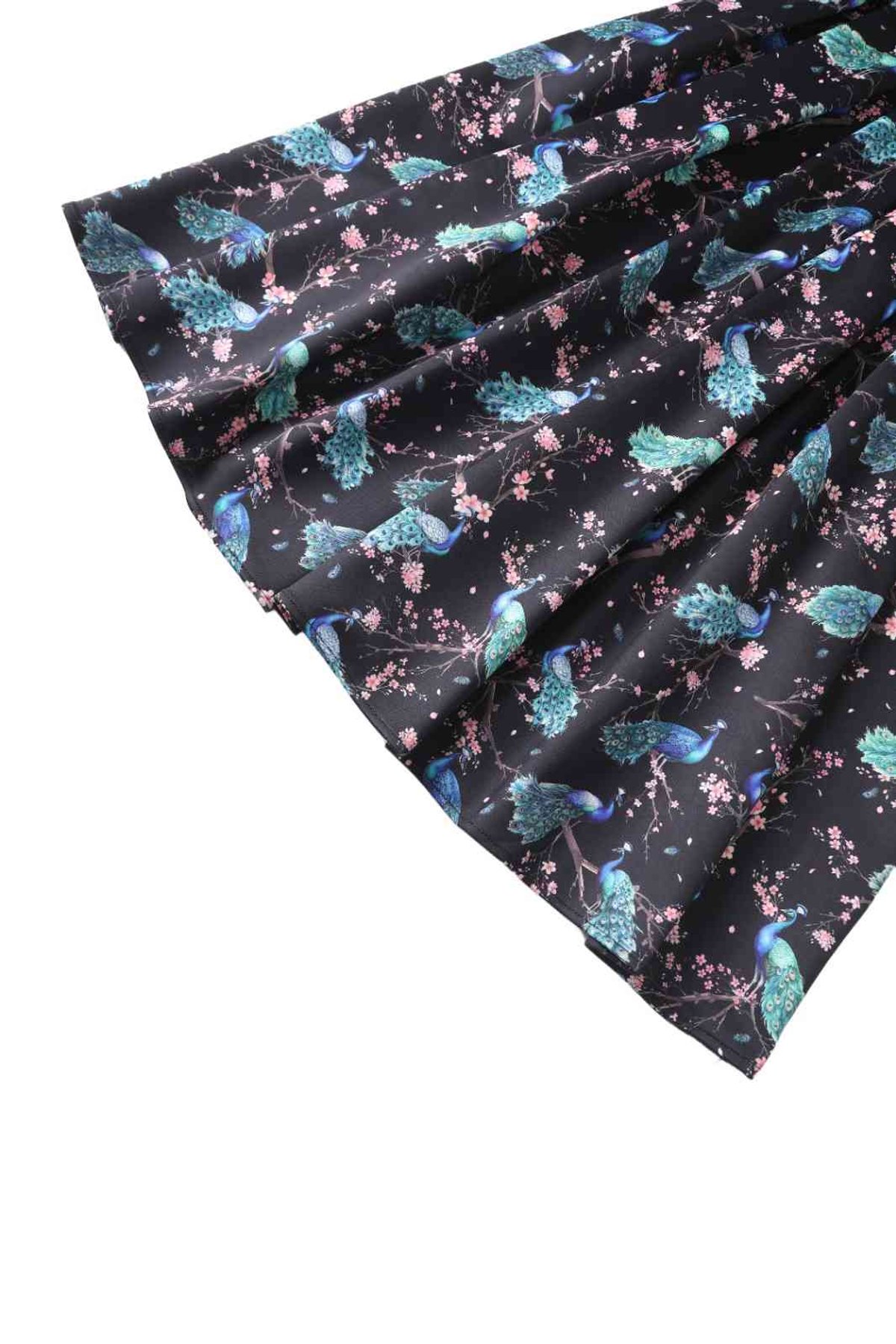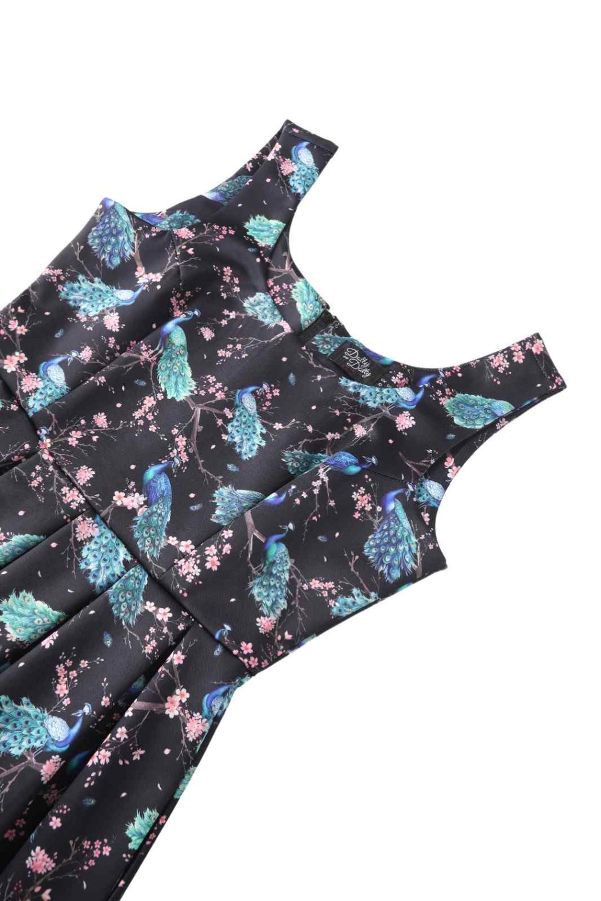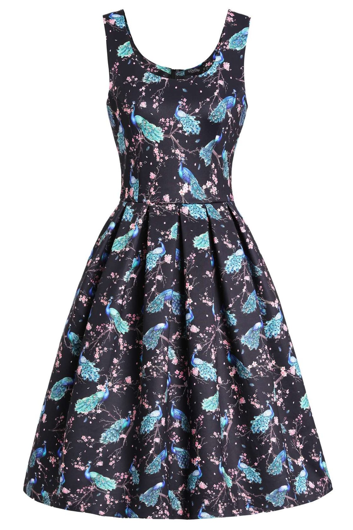Unleash your inner vintage siren with the Amanda Flared Black Peacock Celebration Dress—an absolute show-stopper that’s as playful as it is chic. This flattering silhouette features a fitted bodice with a scoop neckline, both in front and back, highlighting your natural curves with a touch of retro glamour. The full, pleated skirt swirls with every step, making every moment feel like a dance—perfect for those who love to twirl into the spotlight. The bold peacock and floral pattern adds a splash of colour and personality, while the black background keeps it sophisticated and versatile enough for any occasion. Crafted with a lovely stretch blend, this dress not only looks stunning but feels wonderfully comfy too. Its concealed back zip and side pockets combine style with practicality, making it as easy to wear as it is to adore.