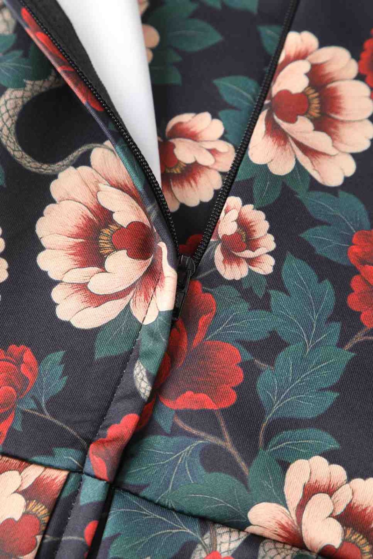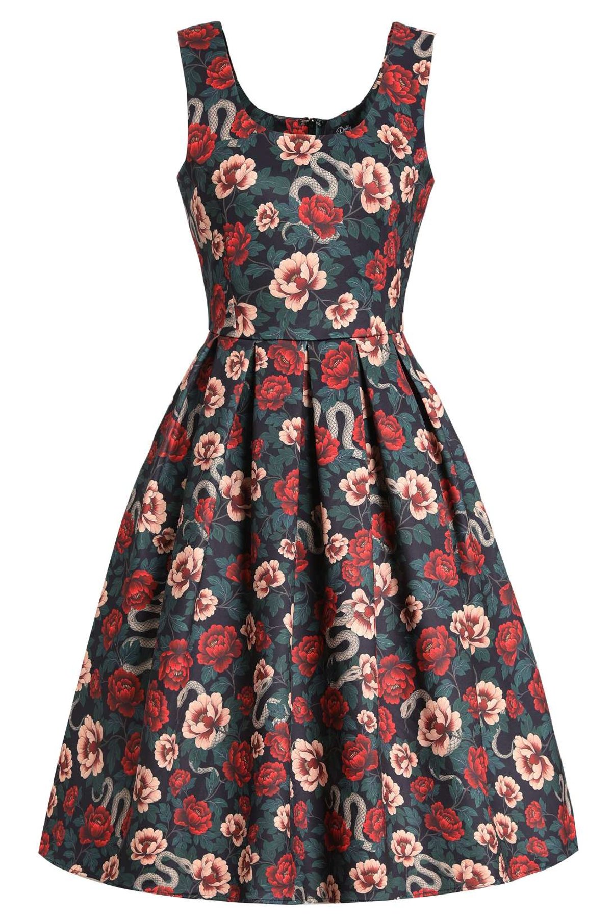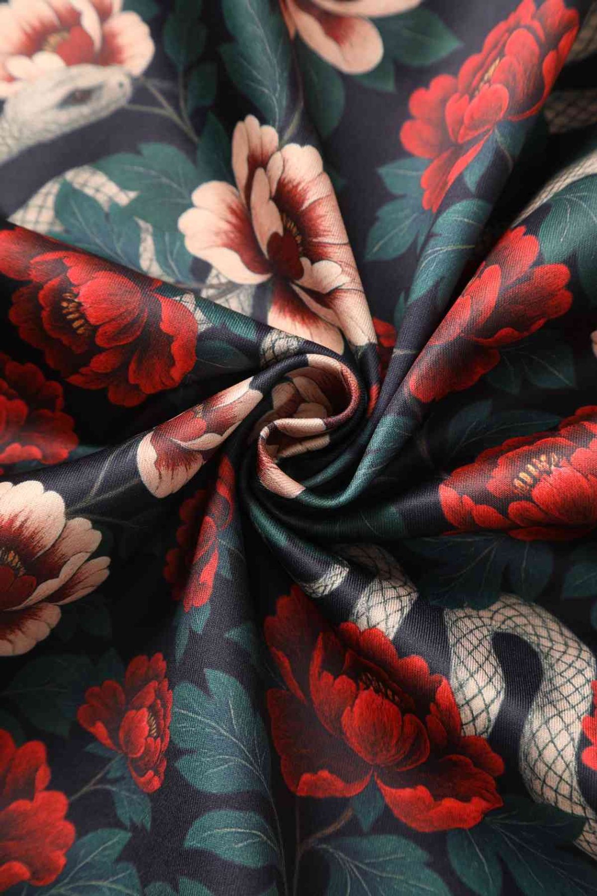 Unleash your inner siren with the Amanda Flared Black Roses & Snakes Celebration Dress — where vintage-inspired charm meets a daring twist. The striking floral and serpent motif dances across a sleek black canvas, creating a purrfect blend of elegance and edge. The fitted bodice with its timeless scoop neckline flatters your silhouette, while the full box-pleated skirt promises a playful, flirtatious swing that’s impossible to ignore. Crafted from a comfy yet chic blend of polyester and elastane, this dress ensures you stay fabulous from cocktail hour to midnight mischief. Whether you're stepping out for a winter gathering or turning heads at a soirée, this dress is your secret weapon for making a claws-down gorgeous entrance.