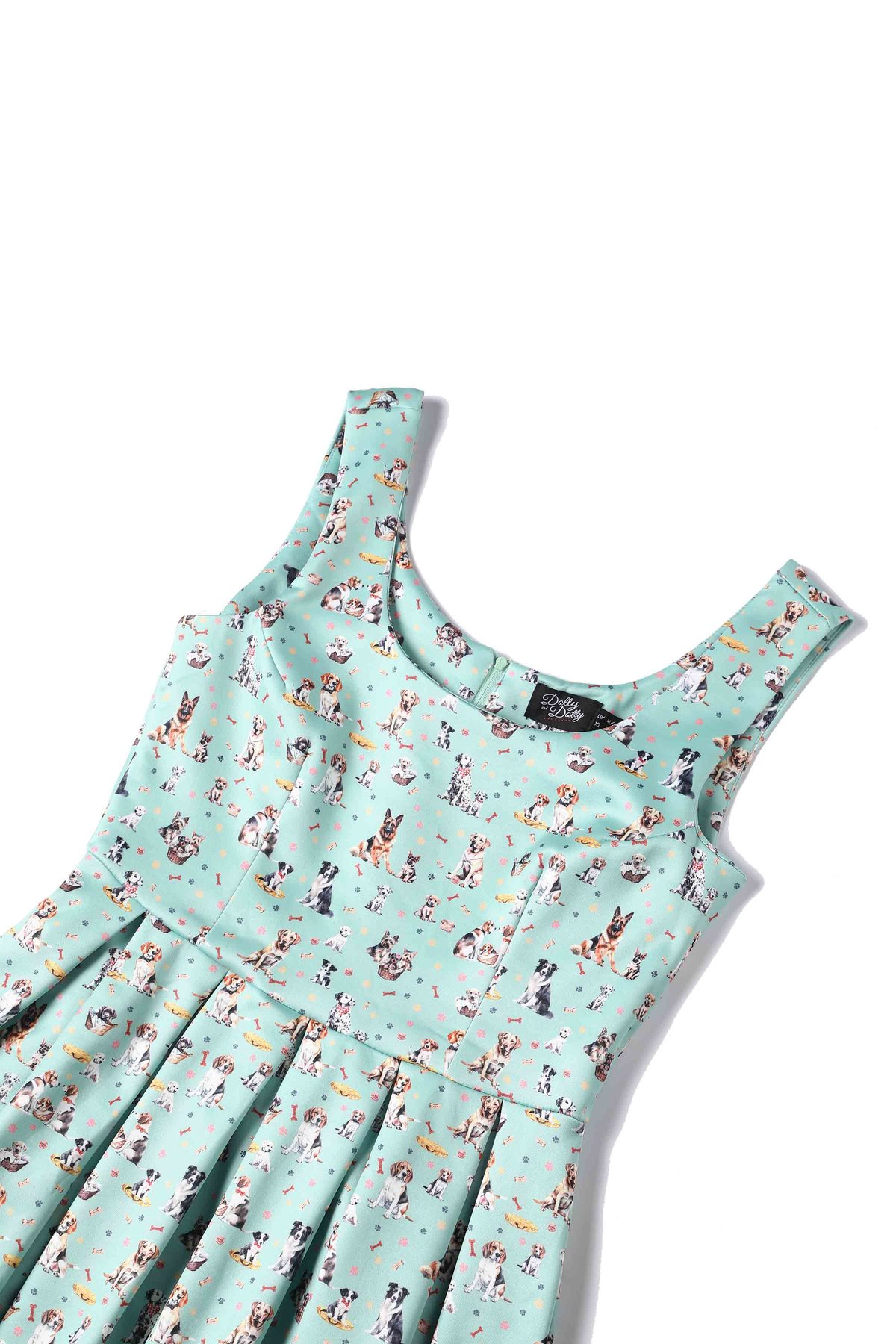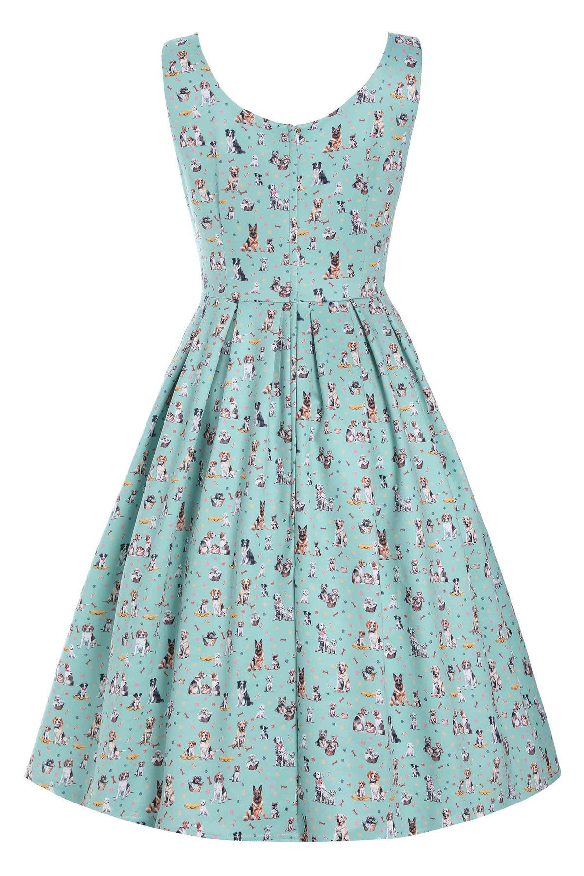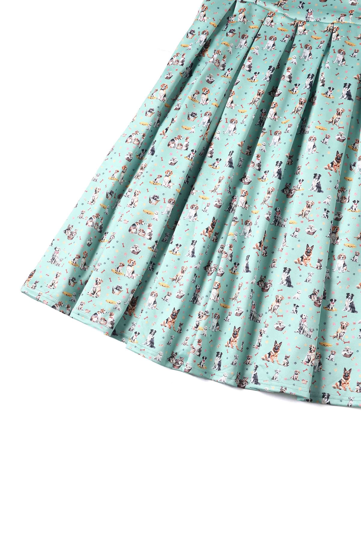 Unleash your inner vintage vixen with the Amanda Light Green Mix Dog Print Flared Dress—an absolute paw-some addition to your wardrobe. With its playful dog print set against a fresh light green backdrop, accented by just a whisper of navy blue, this dress combines nostalgic charm with a chic, contemporary twist. The figure-hugging bodice and swoon-worthy 1950s-inspired box-pleated skirt make every step feel like a walk down a glamorous alley. Crafted for comfort and style, it’s the kind of piece that whispers “purrfect” for those who love to stand out with a subtle sense of mischief.