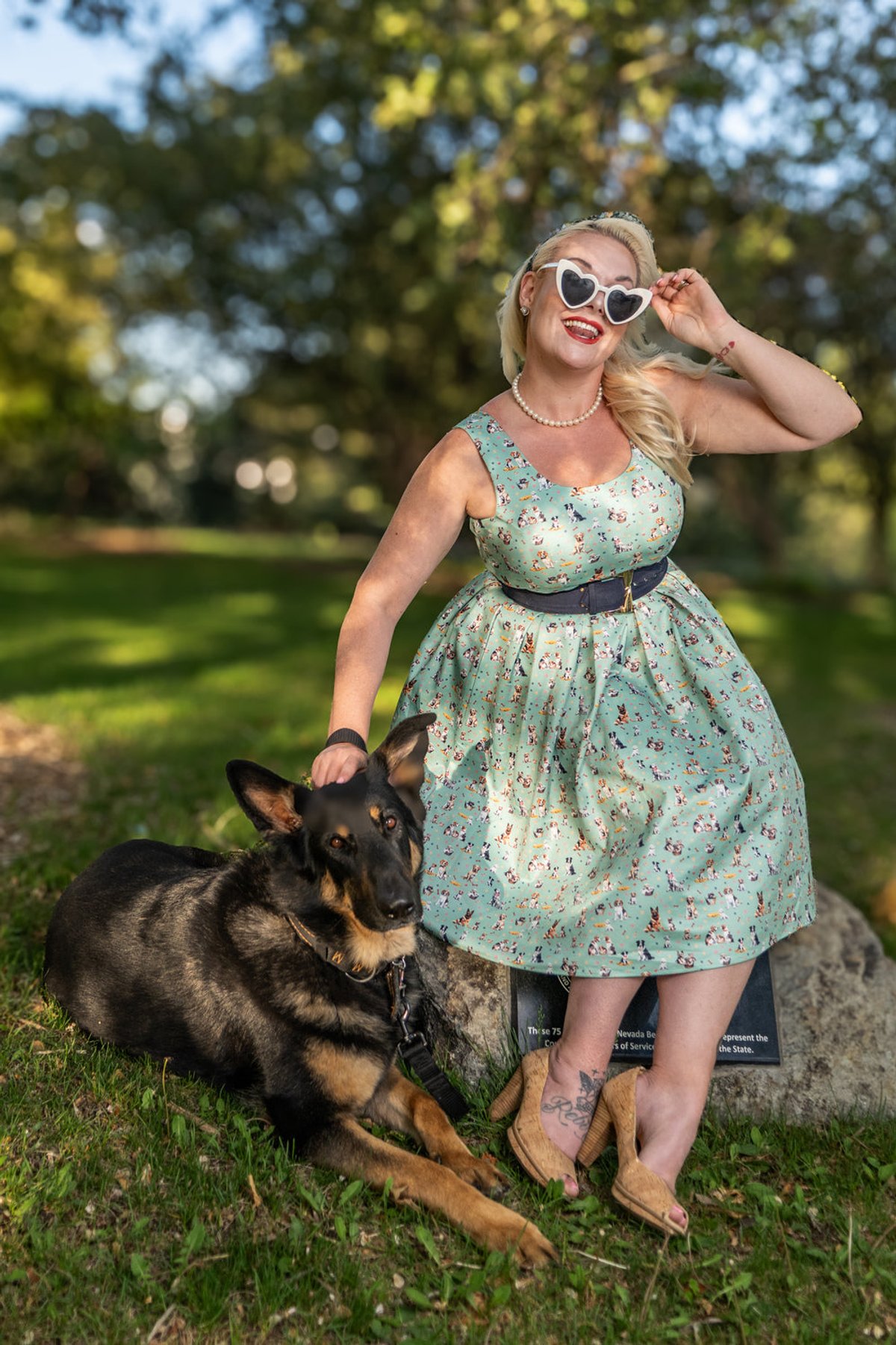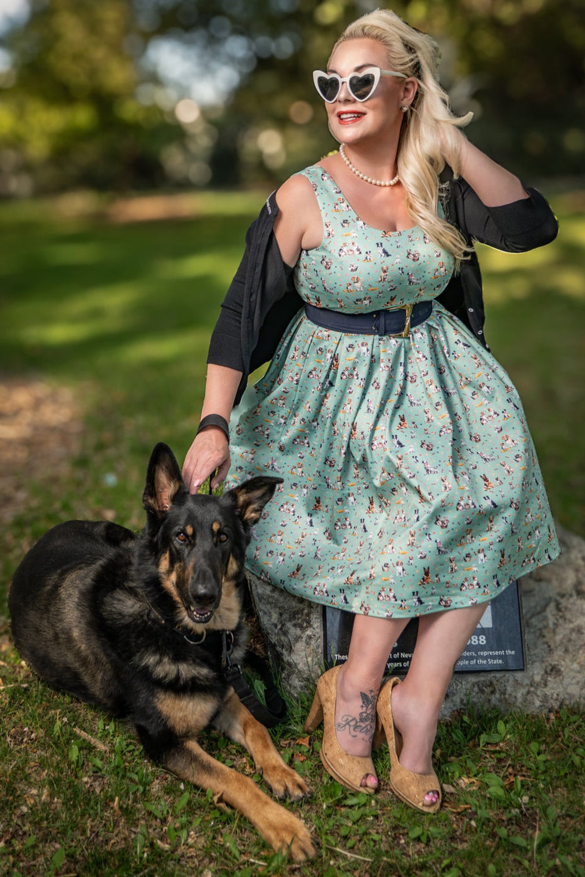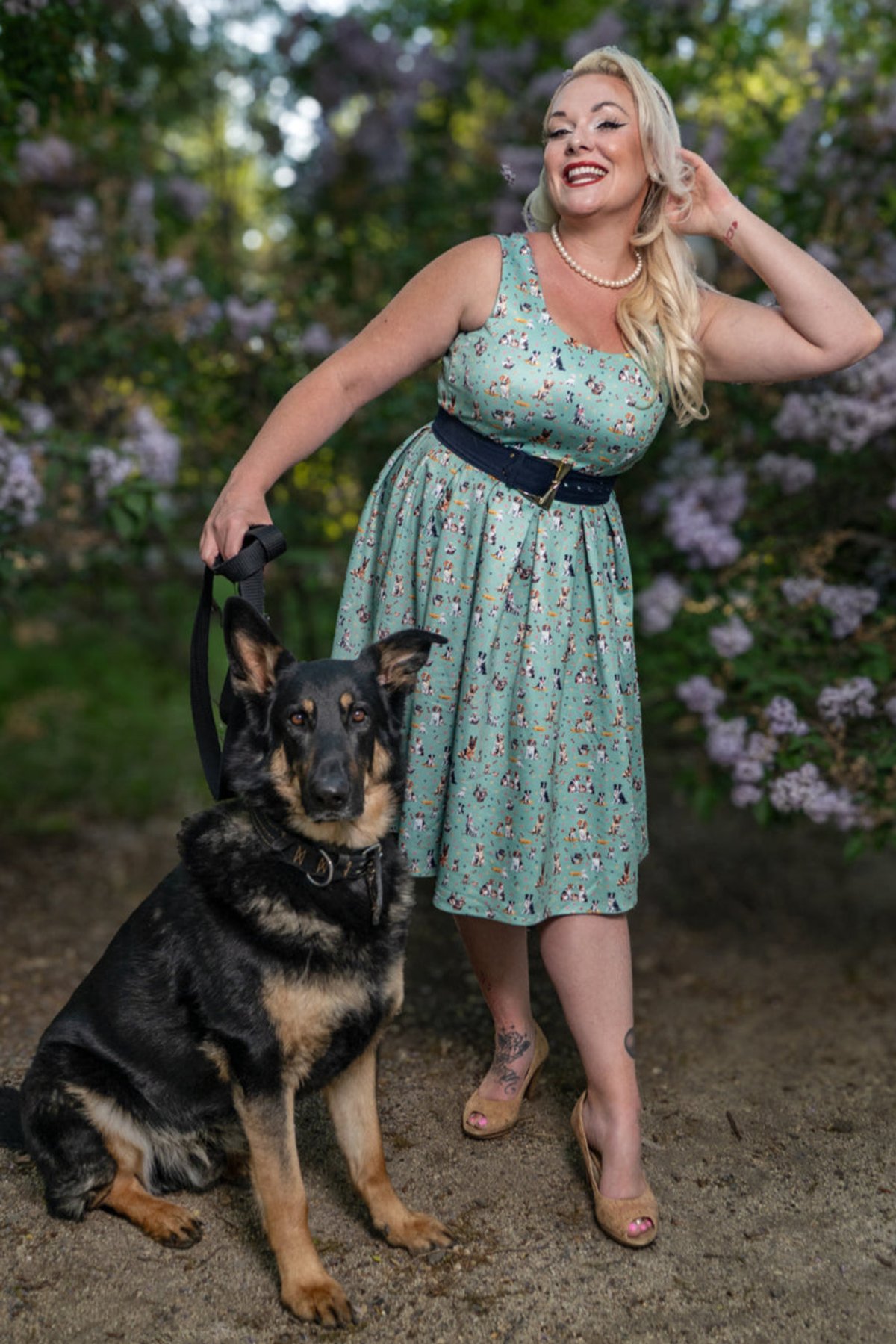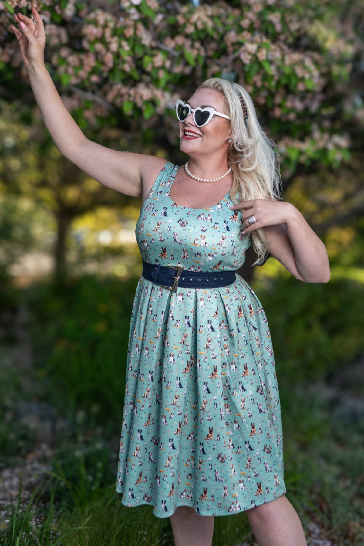 Unleash your inner vintage vixen with the Amanda Light Green Mix Dog Print Flared Dress—an absolute paw-some addition to your wardrobe. With its playful dog print set against a fresh light green backdrop, accented by just a whisper of navy blue, this dress combines nostalgic charm with a chic, contemporary twist. The figure-hugging bodice and swoon-worthy 1950s-inspired box-pleated skirt make every step feel like a walk down a glamorous alley. Crafted for comfort and style, it’s the kind of piece that whispers “purrfect” for those who love to stand out with a subtle sense of mischief.