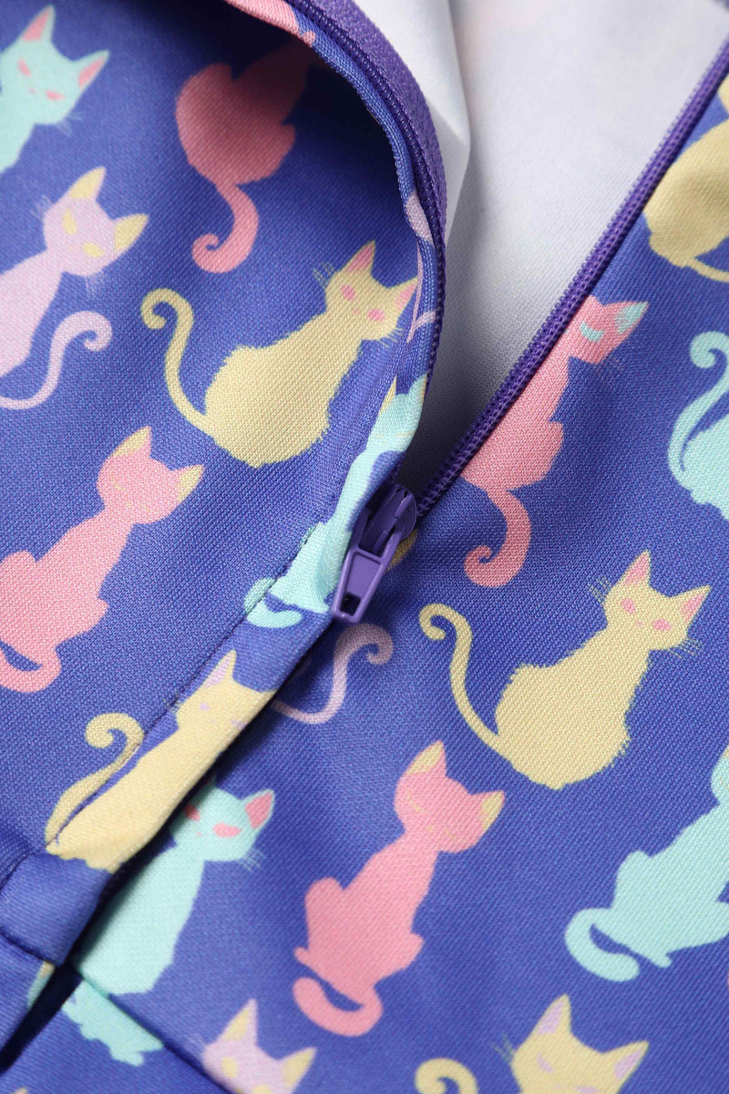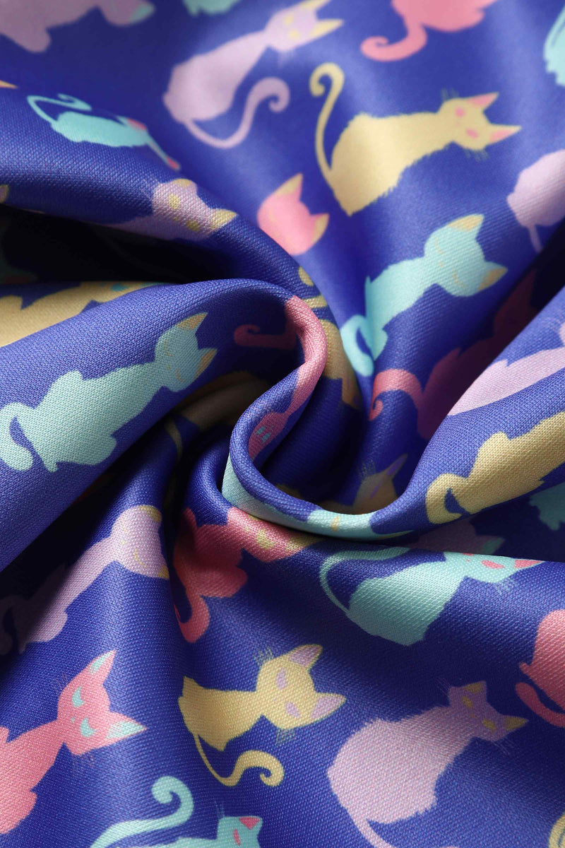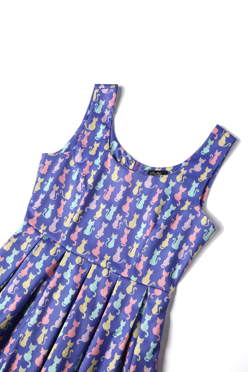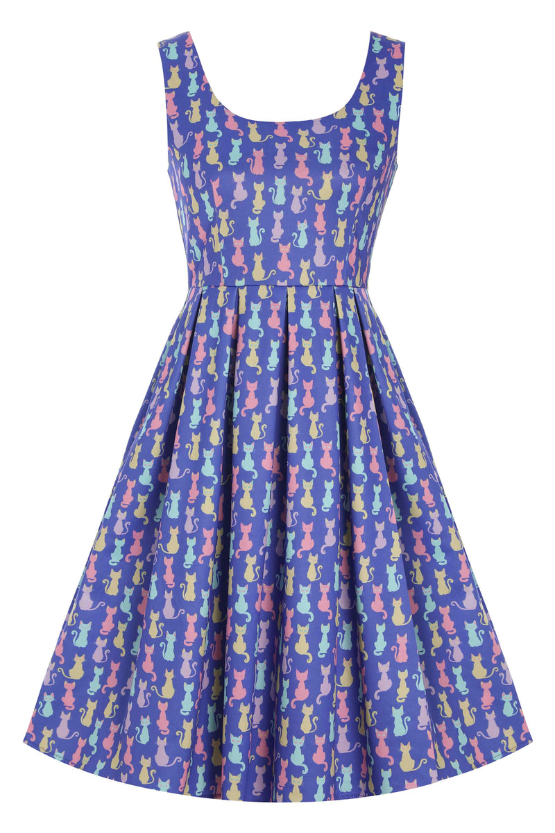 Unleash your feline fabulousness with the Amanda Multicoloured Cat Swing Dress—it's a paw-sitively purrfect blend of retro charm and playful sophistication. The vivid cat silhouettes dance across the fabric, making every step you take a statement of quirky chic. With its flattering swing hem and fitted bodice, this dress is designed to make you feel claw-downgorgeous, whether you're twirling at a vintage soirée or sashaying through a city street. Its bold hues and feline-inspired print bring a splash of fun and flair to any wardrobe, ensuring you'll always be the cat's whiskers in the room.