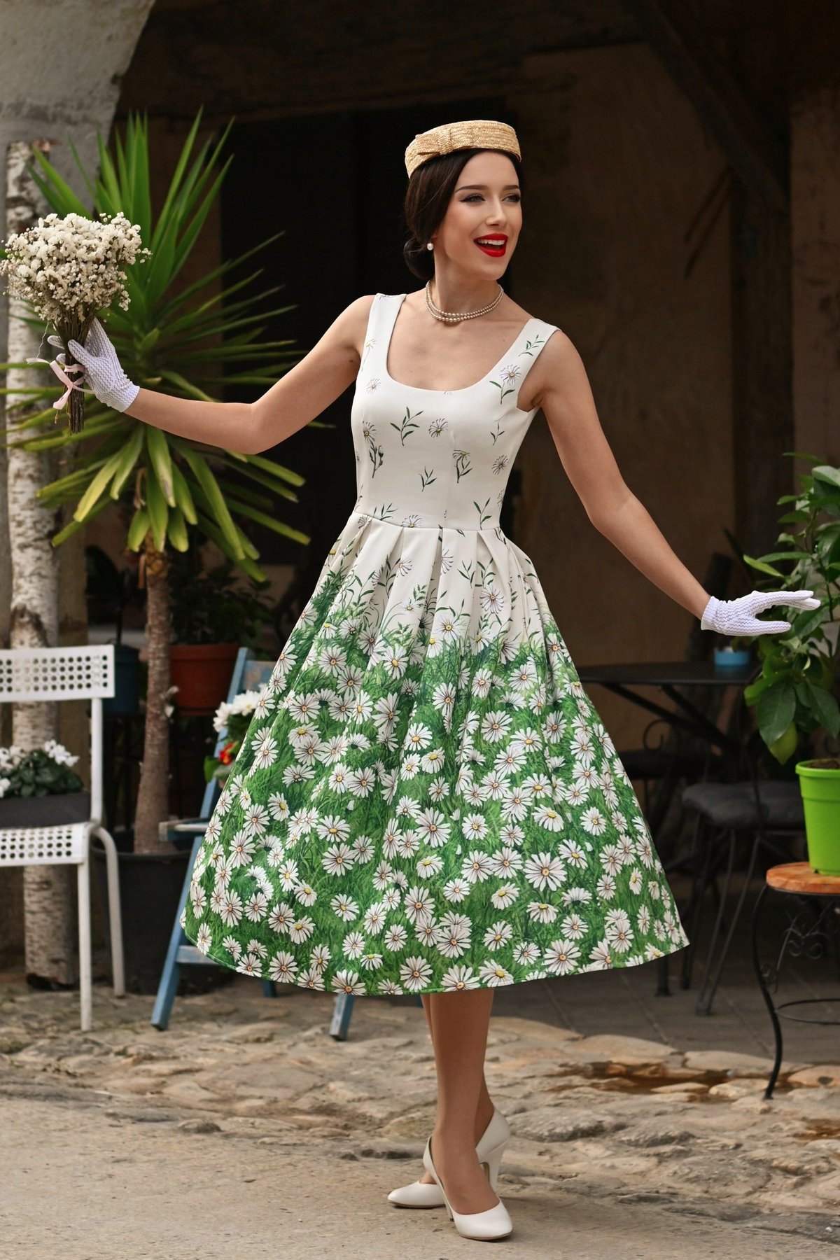 Unleash your inner flower power with the Amanda White Raising Daisy Fit-and-Flare Dress—a pristine white canvas kissed with delicate green florals that blossom with every step. Its sleeveless silhouette and figure-flattering bodice make it a purrfect choice for those sunny days when you want to look effortlessly chic. The gently flared skirt adds a playful bounce, turning every twirl into a moment of pure floral fantasy. Crafted with just the right amount of stretch, this dress offers comfort without compromising on style, ensuring you stay fresh and fabulous from dawn to dusk. Whether you're soaking up sunshine or enjoying a garden soirée, this dress is designed to make you feel as graceful as a feline in full bloom.