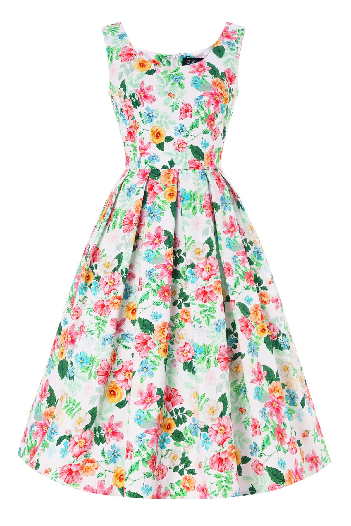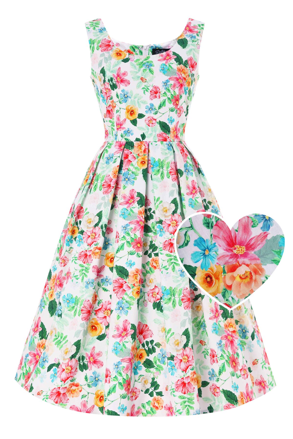 Get ready to turn heads and purr with this Amanda White Vintage Inspired Floral Flared Dress—a true delight that dances between timeless charm and modern sass. Its crisp white hue and playful floral pattern evoke a fresh, vintage allure, while the figure-flattering bodice and flared skirt create a silhouette that's absolutely claws-down gorgeous. The scoop neckline offers just the right flirt, and the hidden side pockets add a sneaky touch of practicality to your polished look. Crafted from a soft, stretchy cotton blend, this dress feels as lovely as it looks, perfect for twirling through your day with effortless elegance and a hint of mischief.