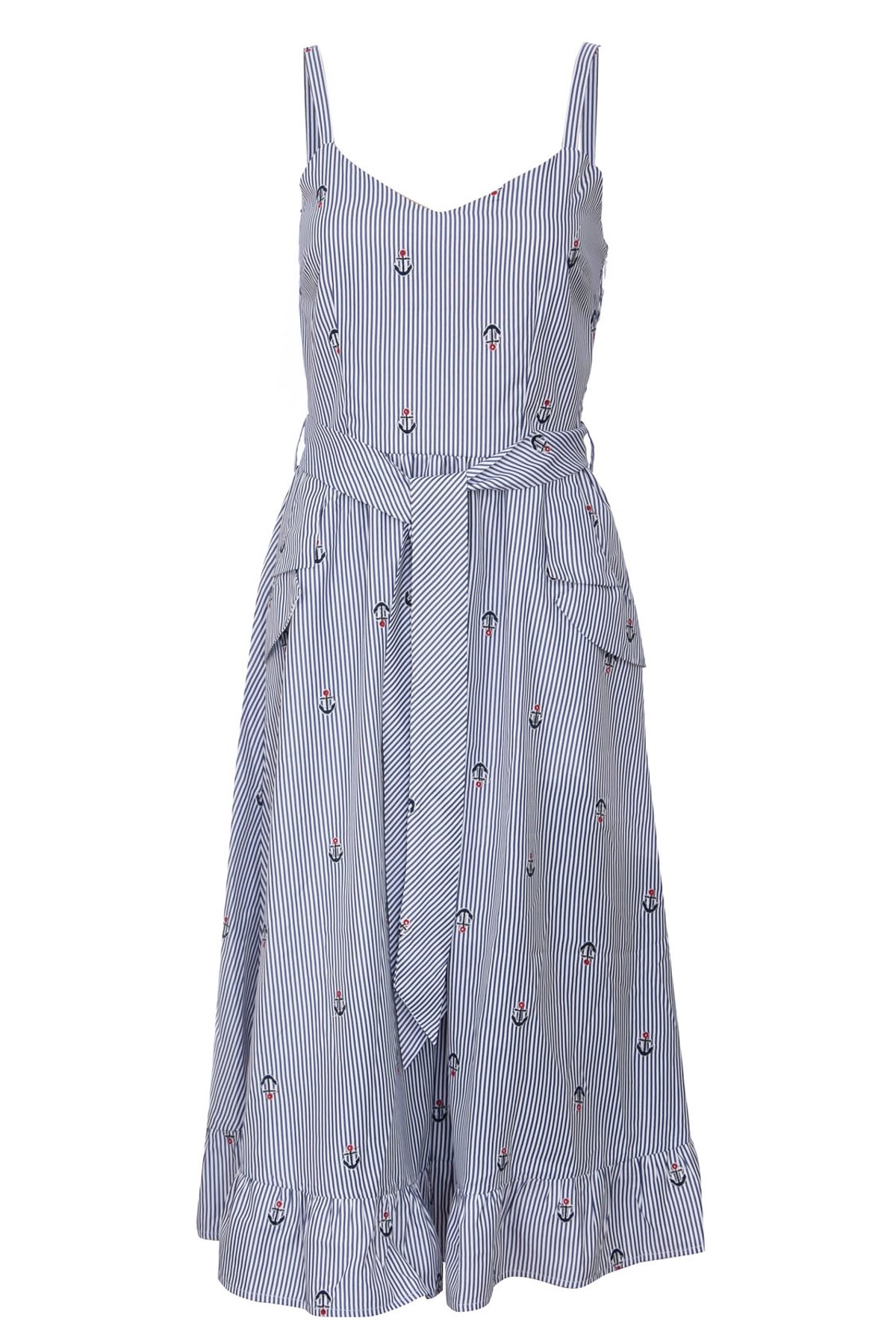 Ahoy, fashion lovers! ⚓ Ready to turn heads with the Andy Anchor Pinstripe Flare Dress? This light blue and white pinstriped beauty will make you the star of any shore walk or dance floor twirl. 🌟