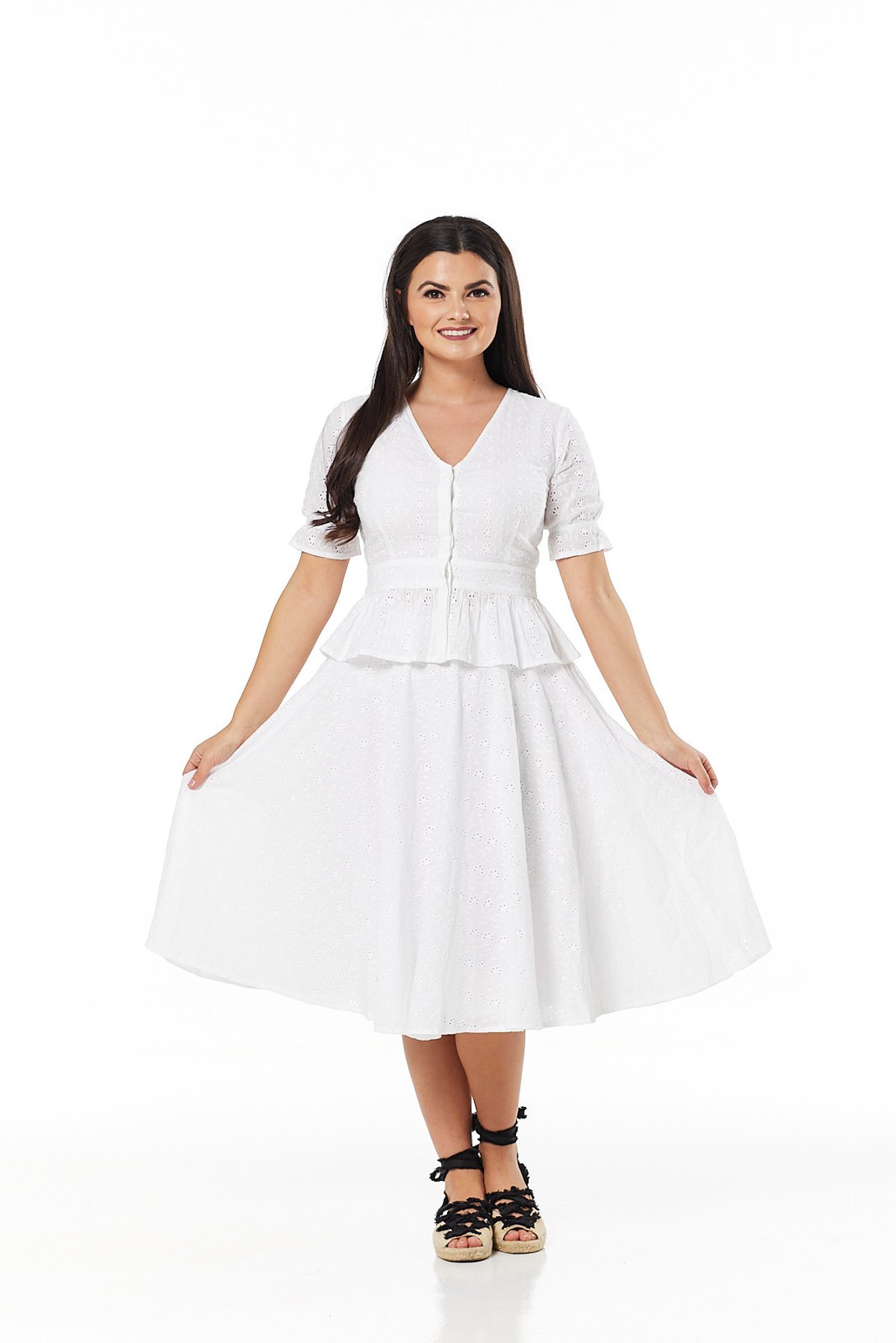 Unleash your inner vintage vixen with the Angelina White Skirt—where timeless charm meets playful sophistication. Crafted from delicate broderie anglaise, this skirt isn’t just eye-catching; it’s a purrfect blend of ladylike elegance and cheeky retro flair. The below-the-knee length and subtle detailing whisper 1950s glamour, while the pristine white hue invites you to create endless looks that are both fresh and fabulous. With its discreet back zipper and handy pockets, you get all the style without sacrificing practicality—because a true feline fashionista knows how to have it all. Whether you’re strutting through city streets or twirling under the evening stars, this skirt proves that classic never goes out of style. It’s a purrfect canvas for your creative spins, ready to be dressed up or down depending on your mood and occasion.