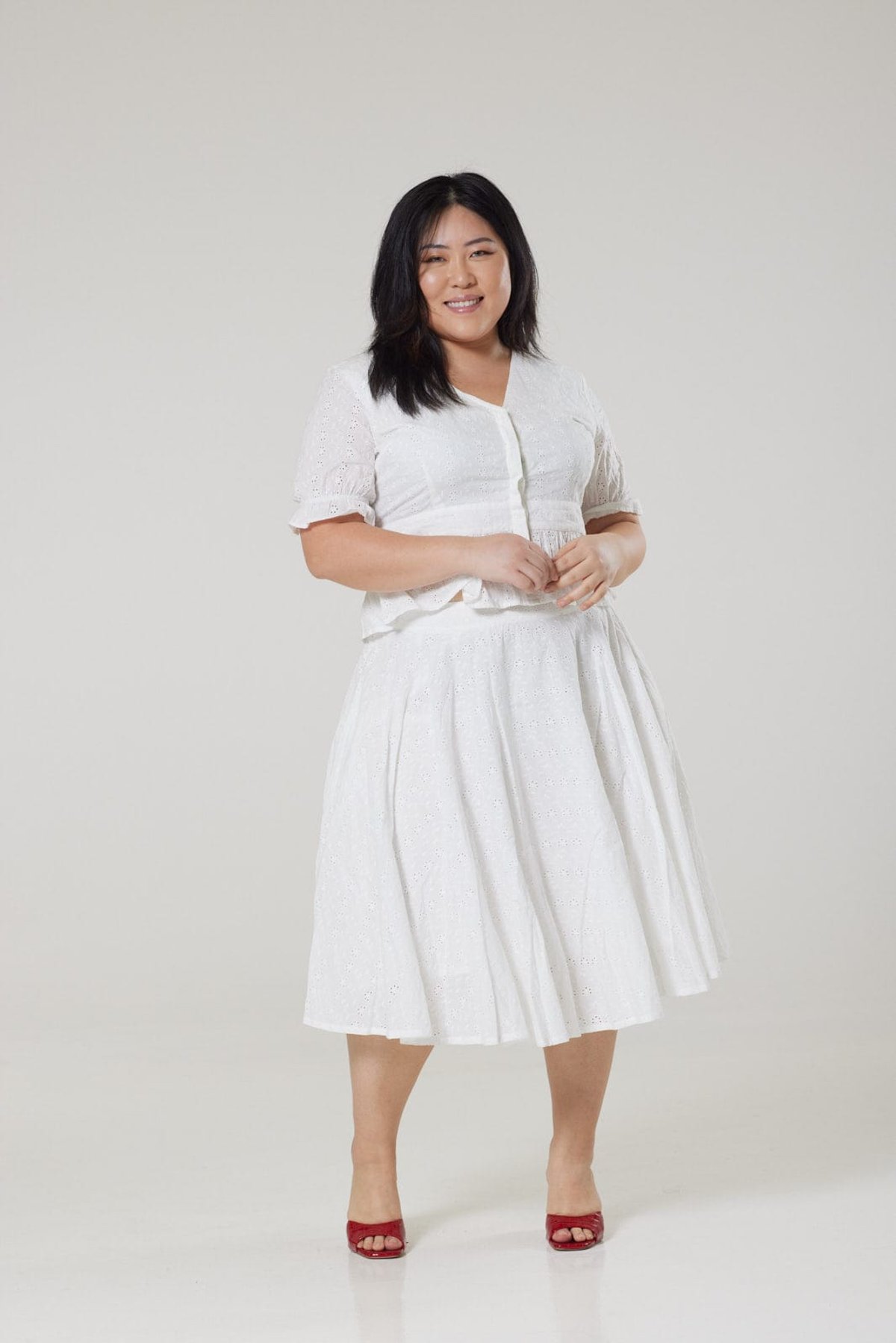Step into a world of vintage allure with our Angelina White Skirt, a purrfect blend of timeless charm and modern ease. Crafted from delicate broderie anglaise, this elegant piece drapes below the knees with effortless grace, making every move look like a scene from a glamorous bygone era. Its pristine white hue and intricate pattern add a whisper of sophistication, while discreet details like a back zipper and practical pockets keep it practical for your busy day-to-day. Whether you're feeling playful or poised, this skirt promises to turn heads with its classic yet fresh vibe—because who says vintage can’t be totally chic today?