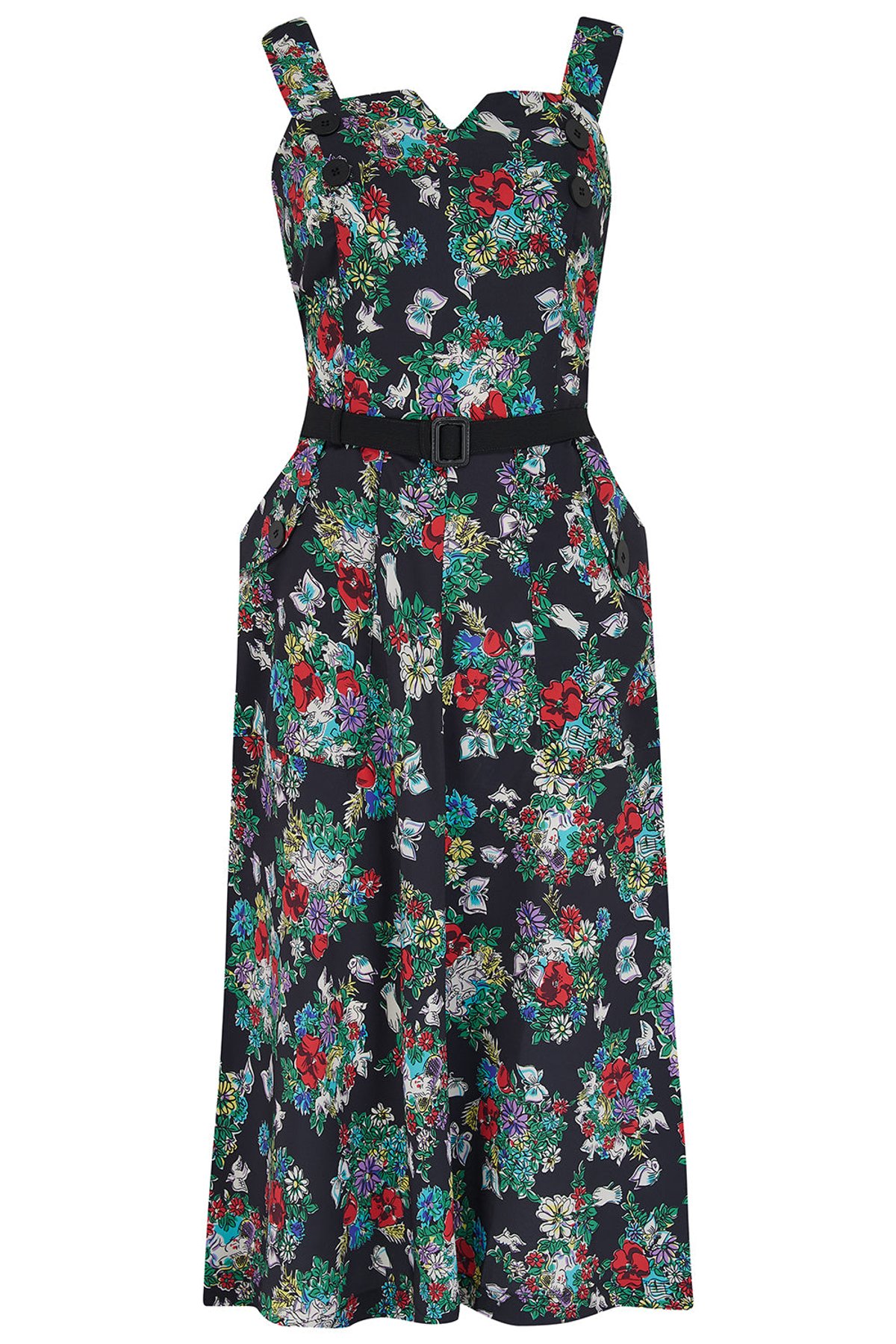 Get ready to swirl and whirl in our delightful Ayda Vintage Swing Dress & Detachable Shrug Bolero set 💃. Printed with our lovely Secret Garden design on a black canvas, this piece harks back to the glamour of the rockabilly era. Its floral pattern blooms with retro charm, painting a picture of the enchanting 1940-50s 🌼.