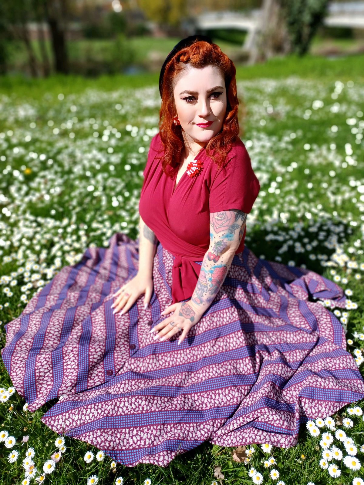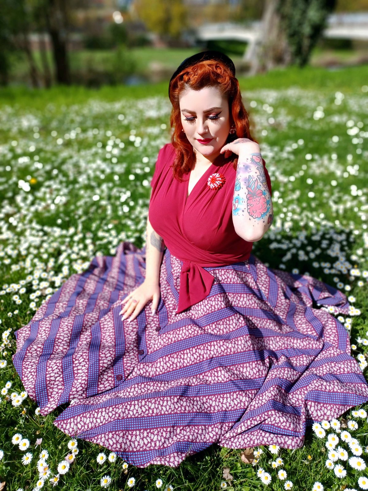 For a look that’s utterly delightful, pair it with a fitted blouse or a cozy knit top—think of it as the feline equivalent of a purrfect layering partner. Since this look is all about vintage finesse, add a pair of retro-inspired heels or flats, and perhaps a dainty handbag. Keep accessories minimal to let the print do the talking, but don’t forget a touch of feline-inspired jewellery—just enough to make a statement without crossing the line into childish.