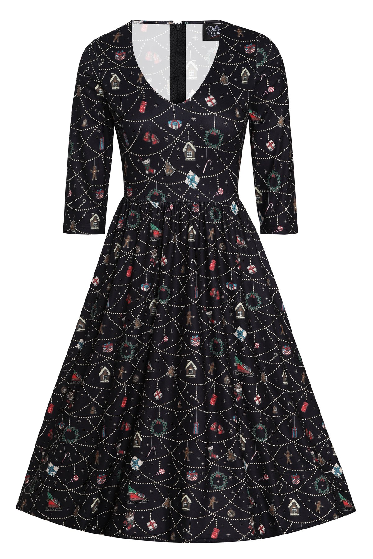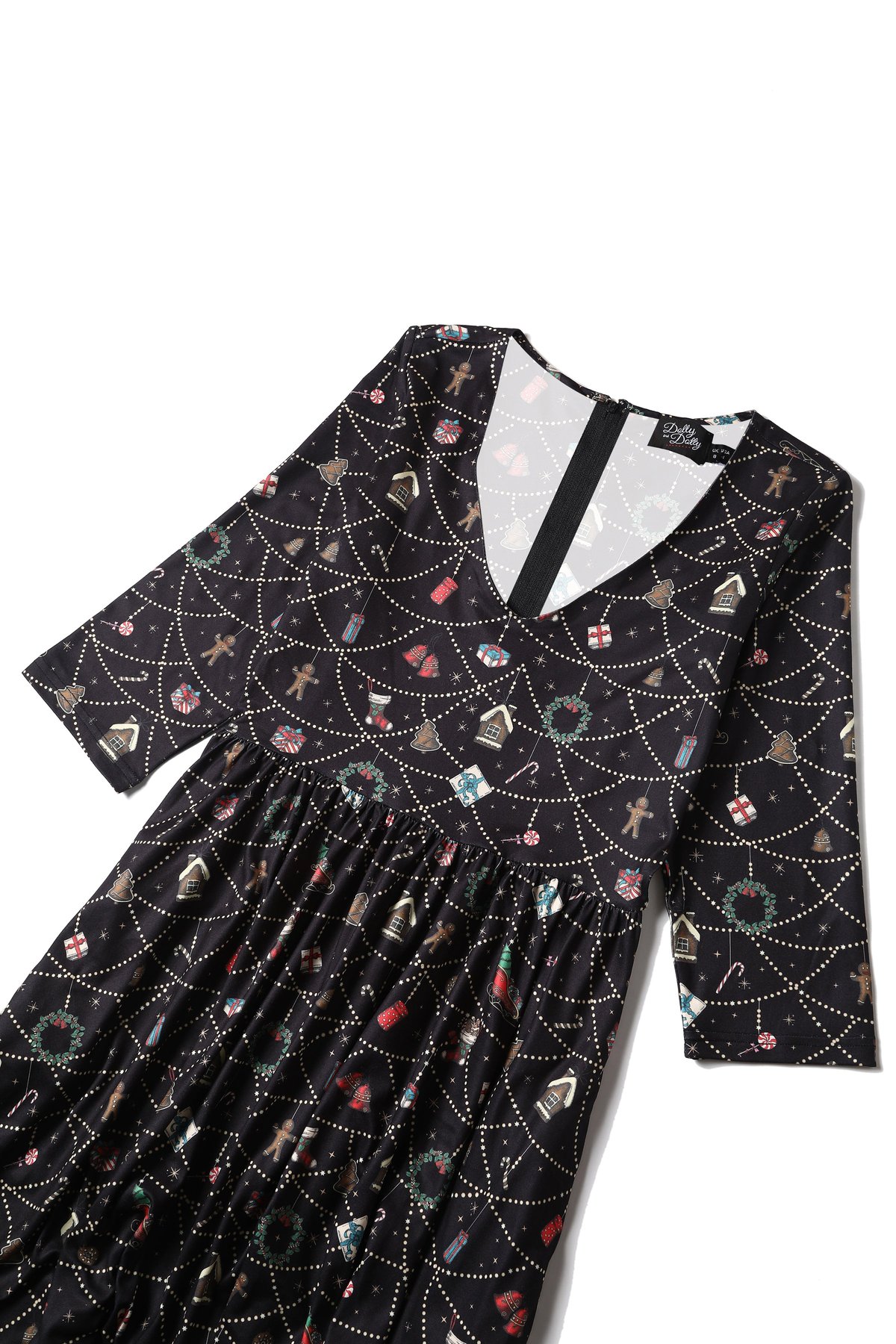 Get ready to turn heads in the Billie Long Sleeved Dress, where festive charm meets sleek sophistication. The playful Christmas ornament print adds a dash of holiday cheer, while the black backdrop keeps it chic and versatile. The flattering V-neckline and chic 3/4 sleeves make it a purrfect pick for a variety of occasions, and the gathered waistline ensures you’ll look utterly fabulous—flaunting that figure in all the right ways. Plus, pockets? Yes, please! Practicality has never looked so stylish, and the comfy knit fabric makes this dress a joy to wear from brunch to evening soirees. Whether you’re decking the halls or just adding a hint of festive sparkle to your wardrobe, this dress is sure to keep you looking paws-down gorgeous all season long.