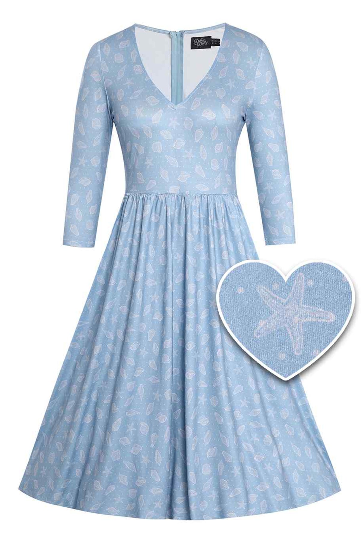 Dive into sunshine-ready style with our Billie Blue Seashell Casual Dress—a true wave of charm! This breezy beauty pairs a playful seashell print with a flattering gathered waist and a swingy A-line skirt, ensuring you look effortlessly put-together whether you're seaside or city-bound. The classic blue and white palette evokes coastal memories, while the 3/4 sleeves add just the right touch of coverage to keep you comfortable from brunch to sunset strolls. Made from a lightweight, stretchy blend, this dress moves with you, making every step as graceful as a feline’s pounce. With pockets for your seaside keepsakes or a quick hand gesture, it’s the purr-fect combination of style and practicality. Claws down gorgeous, this dress is a purrfect addition to your summer wardrobe—ready to make waves wherever you go.
