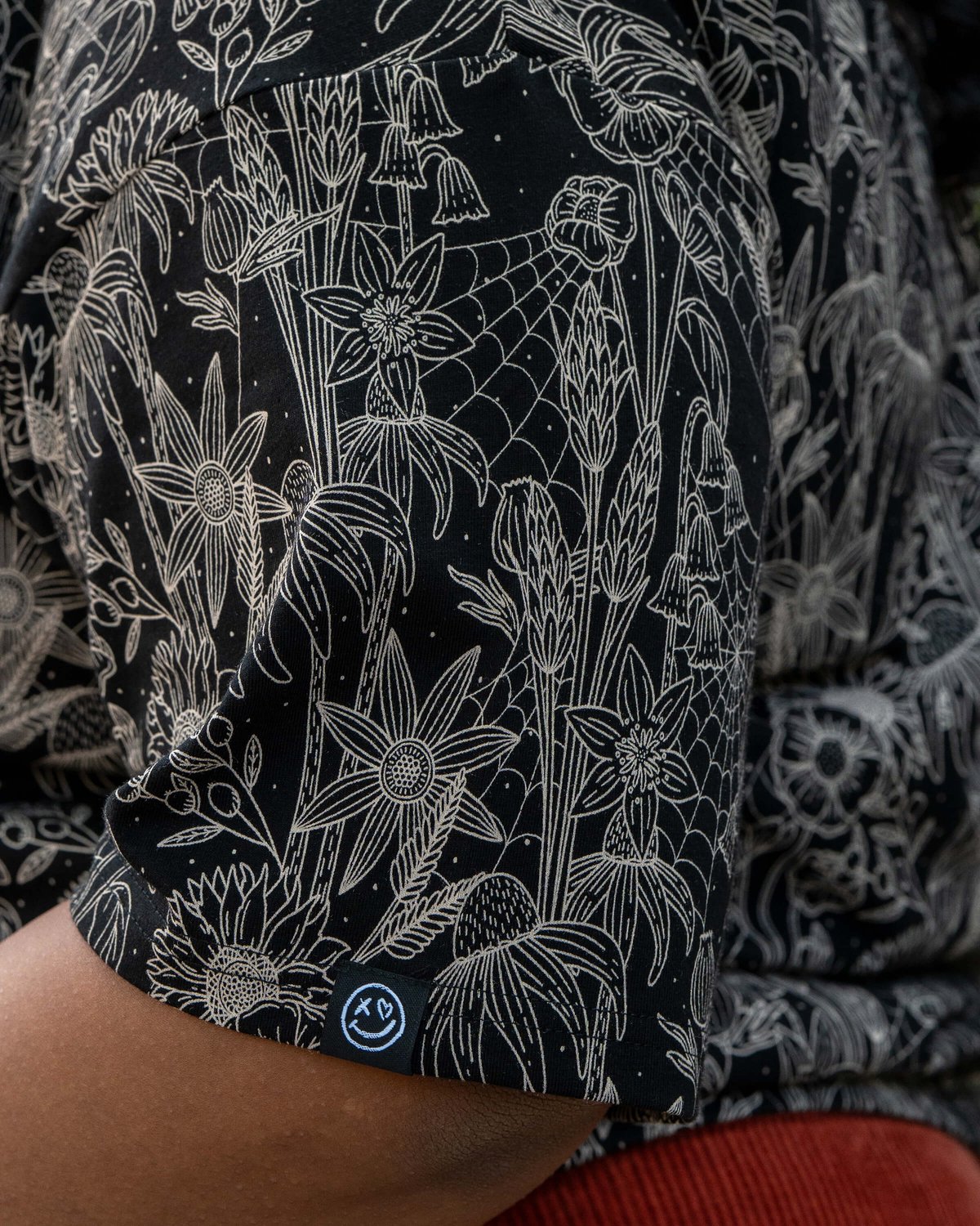 Handcrafted by indie artist WaffleMama, the gothic garden print adds a playful twist to your relaxed style 😎. And the best part? It’s 95% cotton 🧵 and 5% elastane, offering a fashion-forward fit that’s as comfortable as it is stylish. Who said the dark arts couldn’t be comfy?