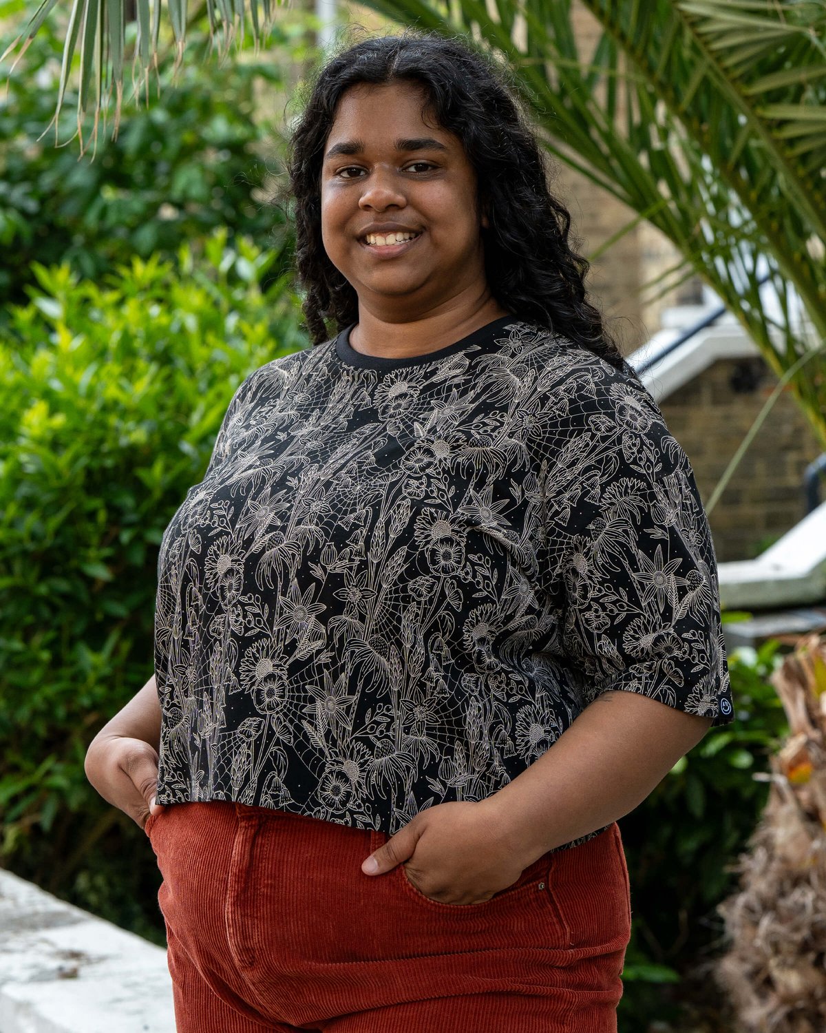 Own the night in our Black Floral Cobweb Tee 🖤. A whimsical concoction of floral motifs and enchanting cobwebs, this cropped boxy tee is the perfect attire for moonlit mischief or cosy spellbook reading sessions 🌙📖.