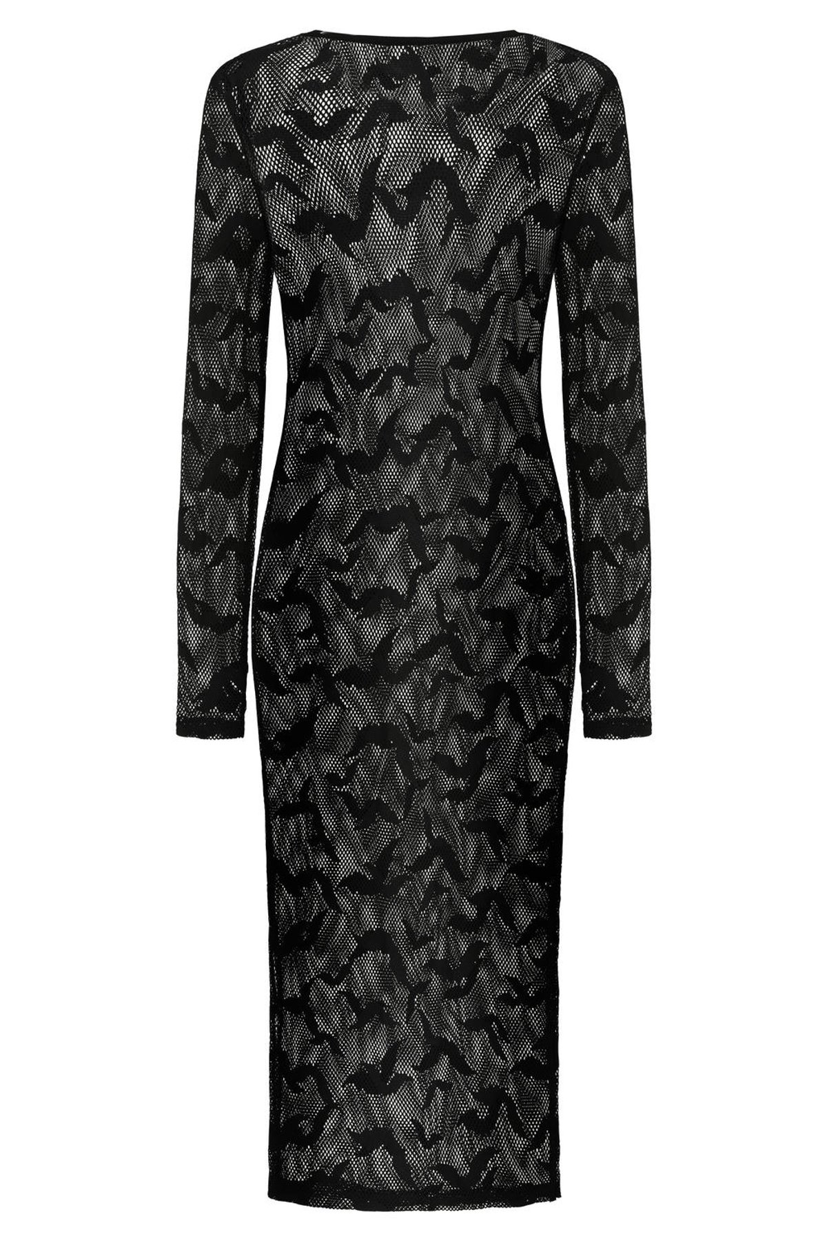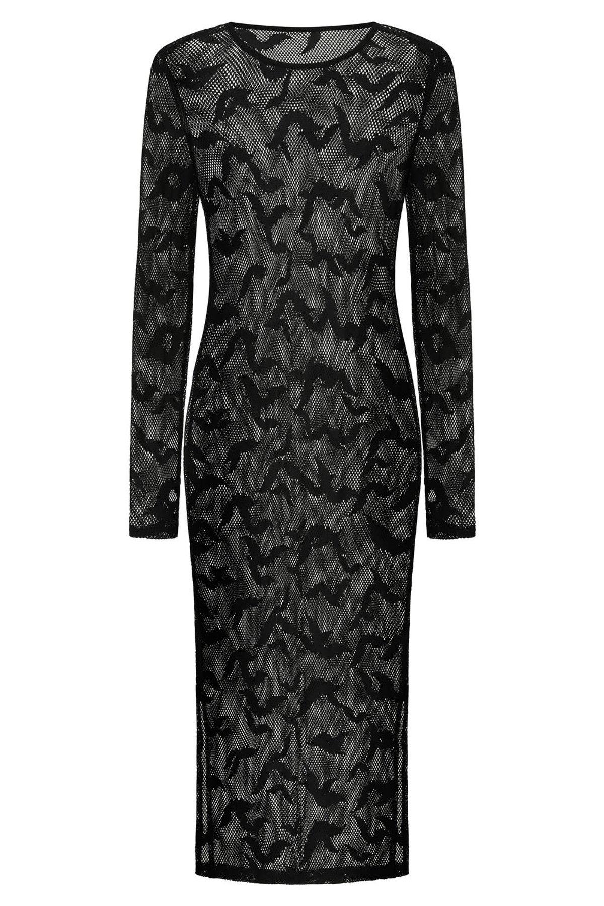 Unleash your inner dark diva with the Black CRYPT—an alluring blend of gothic mystique and modern sass. The soft, stretchy bats fishnet fabric adds a purrfectly daring touch, while the fitted silhouette clings to your curves with a seductive allure. Long sleeves with thumb holes and a rounded neckline complete the look, giving you that enigmatic, yet effortlessly chic vibe. Whether you're channeling a mysterious femme fatale or making a bold statement, this dress is crafted to turn heads and stir intrigue at every turn. Slip into the Black CRYPT and let your style cast an enchanting spell that’s just a little bit wicked.