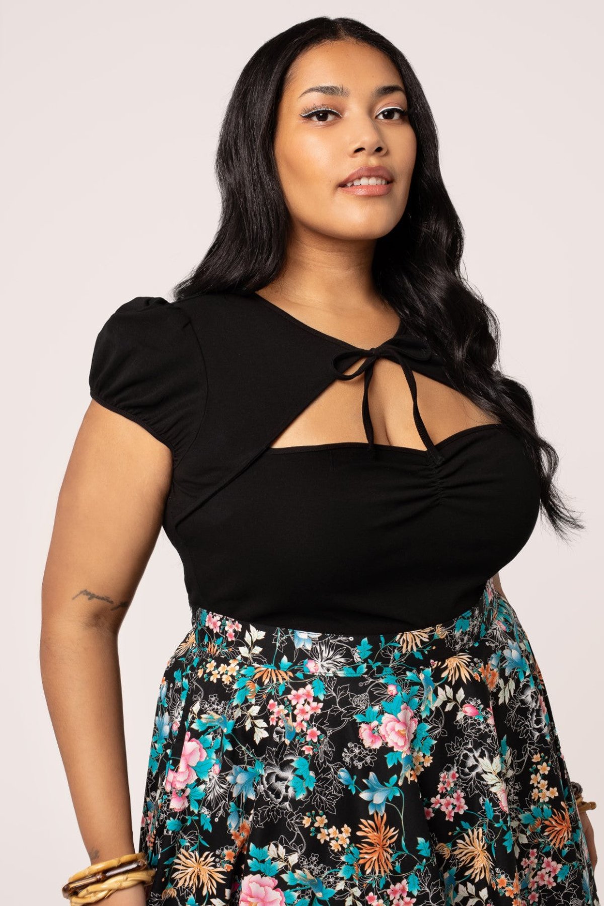 Unleash your inner feline fashionista with the Priscilla Top—a sleek, black jersey marvel that oozes timeless charm with a purrfect retro twist. The sweetheart neckline and charming keyhole hint at a flirtatious allure, while the puff sleeves and fitted silhouette create a look that's both chic and effortlessly flattering. Crafted from a plush cotton blend with just a touch of elastane, this top moves with you, ensuring comfort as you strut your stuff from sunup to starry night. Its versatile length makes it a wardrobe staple, ready to elevate your style game with a dash of sassy sophistication. Whether you're slipping into this for a casual brunch or a glamorous evening out, the Priscilla Top promises to keep you looking claws-down gorgeous.
