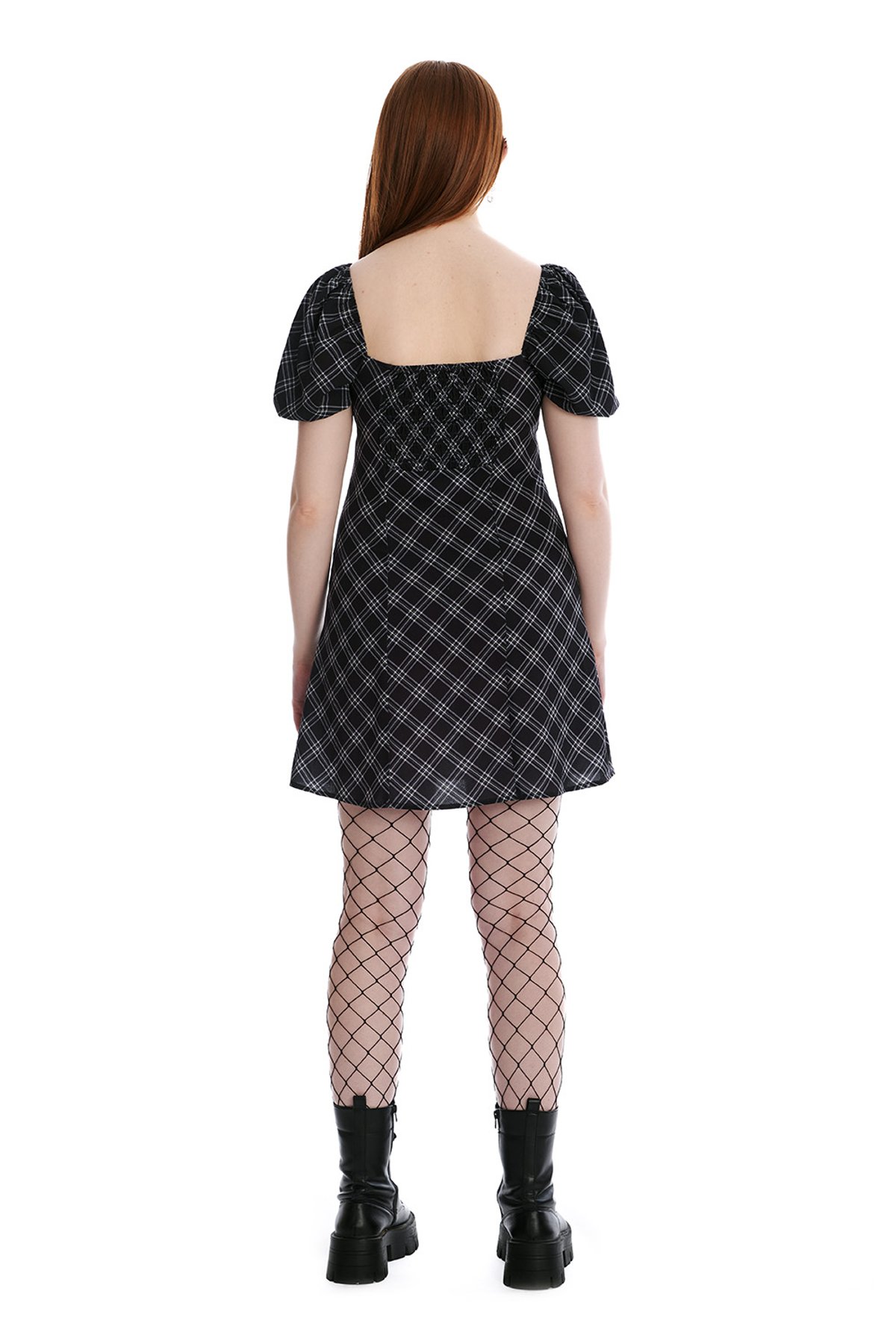Unleash your inner vintage vixen with the Black Juliet Plaid Dress, a purrfect blend of retro charm and modern sass. This dress is a true showstopper, featuring a timeless black and white plaid pattern that’s as versatile as it is fabulously feline. Its effortless silhouette and classic woven fabric make it a paws-itively stylish choice for any casual occasion. Whether you're channeling 50s rockabilly or just craving a look that’s both playful and polished, this dress is your new go-to for turning heads with claws-down gorgeous confidence.