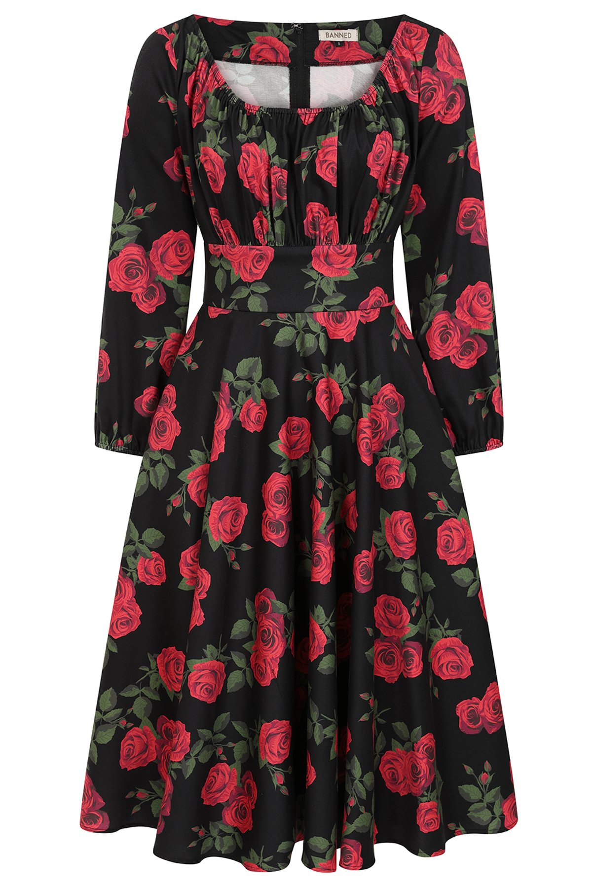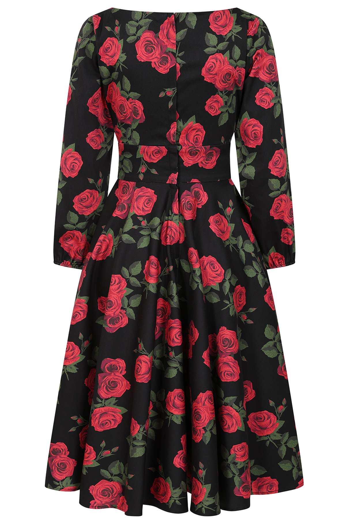 Unleash your inner vintage vixen with this purrfectly romantic roses swing dress — a stunning blend of classic charm and playful allure. The bold black backdrop showcases vibrant red blooms that pop with feline finesse, while the wide neckline and 3/4 sleeves add a touch of retro sophistication. The gathered bodice hugs your curves in all the right places, and the full circle skirt invites endless twirling fun. Handy side pockets give it a practical paw-sitive twist, making it as fabulous as it is functional. With its timeless floral print and flattering silhouette, this dress is a true showstopper — ready to turn heads and steal hearts.