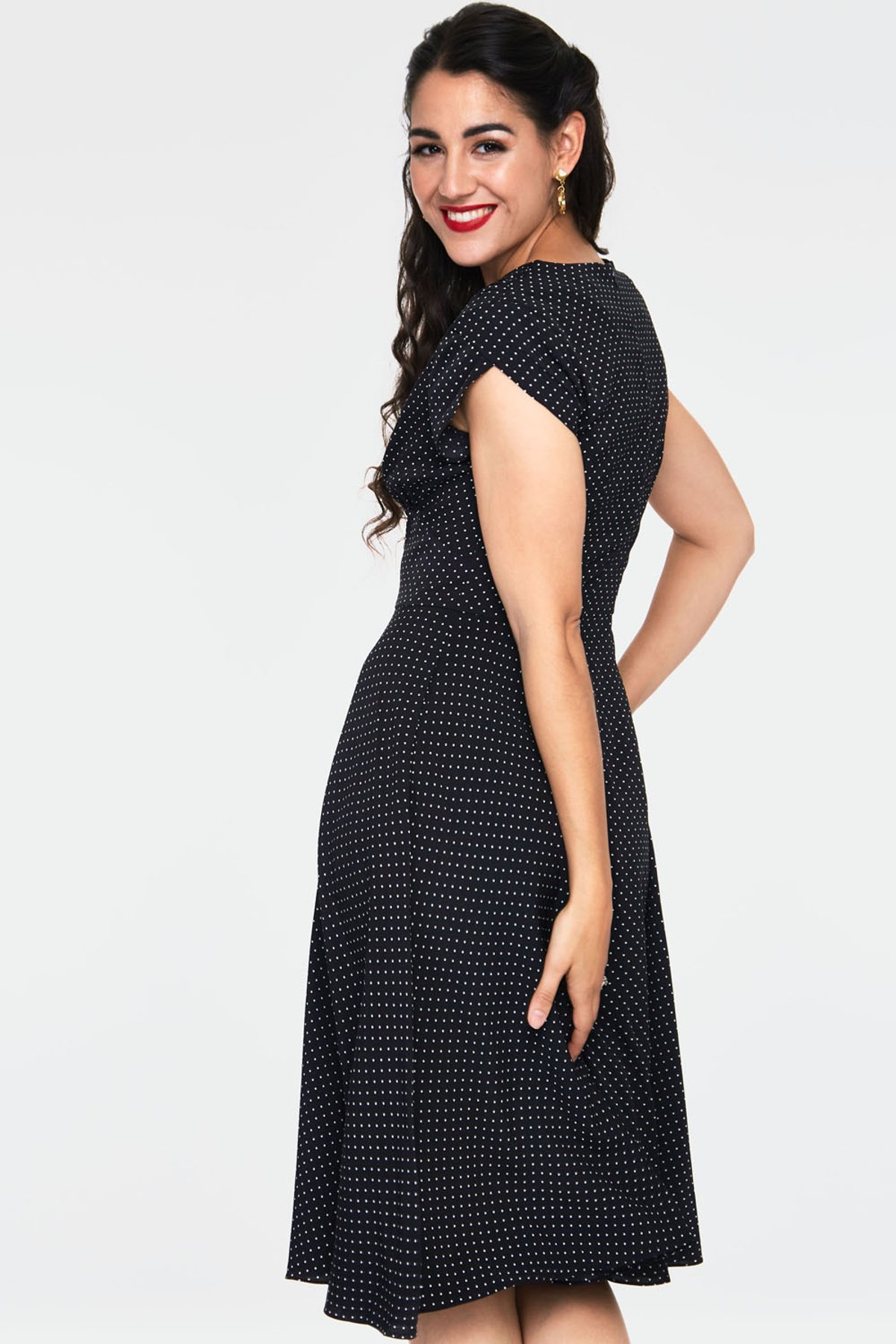 Get ready to turn heads in this purrfect blend of vintage charm and modern chic! The black fabric pops with crisp white polka dots, giving you a claws-down gorgeous silhouette that’s both playful and polished. The flared midi skirt swings with every step, while the V-neck and short sleeves add a dash of flirty sophistication. Whether you're sashaying at a garden party or enjoying a cheeky cocktail, this dress ensures you're always dressed to impress—meowvelously visible from every angle.