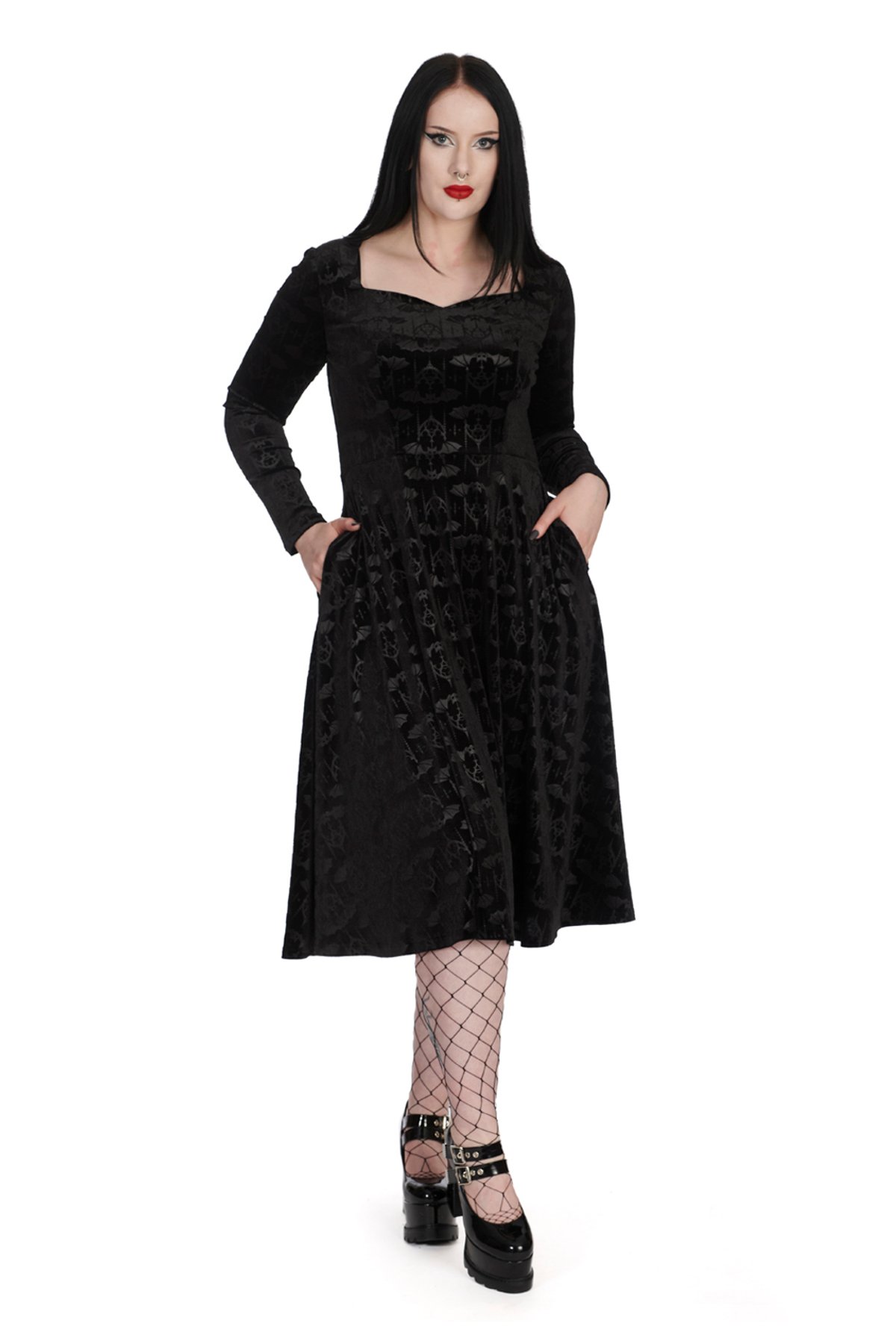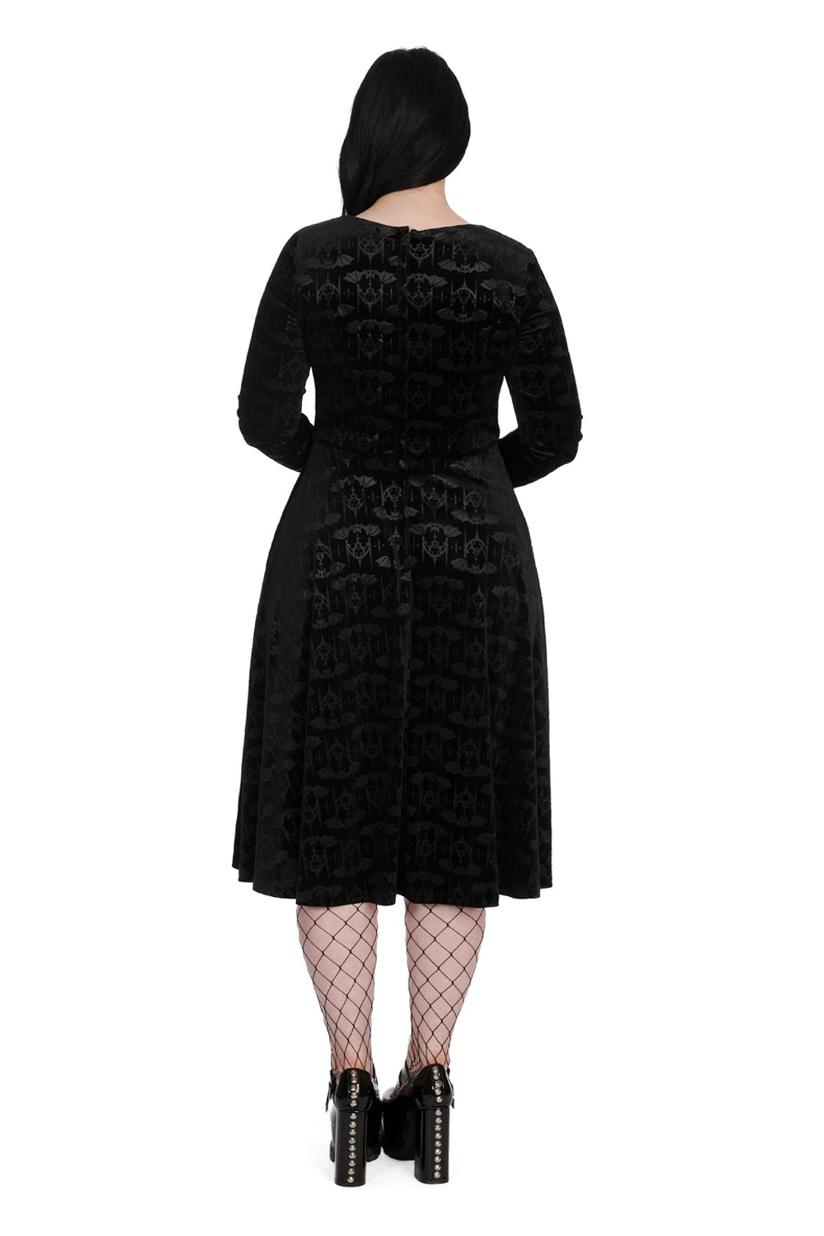 Unleash your inner enchantress with this black velvet fit and flare dress that’s as mysterious as a midnight moonlit prowler. The rich, plush fabric drapes beautifully, while the playful bat print adds a purrfectly wicked twist to your wardrobe. Flattering and fabulous, it’s designed to hug your curves and sway with every step, making you look utterly claws-down gorgeous. The long sleeves lend an air of elegance, perfect for transforming from daytime to nighttime mischief with ease. Whether you’re feeling daring for a gothic soirée or just want to turn heads at a stylish brunch, this dress has got your darkly glamorous back.