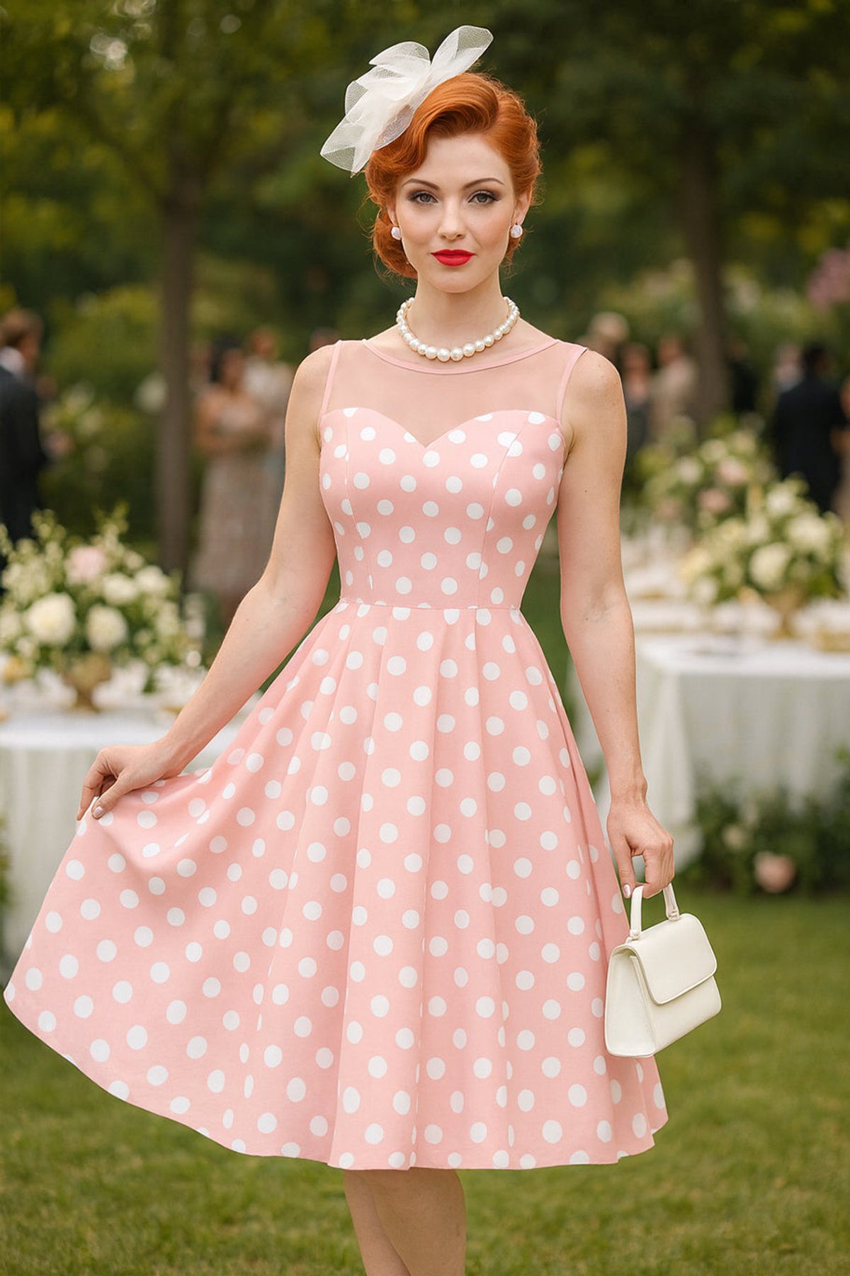 Pounce on the chance to add a dash of vintage charm with the Blair Light Pink Polka Dot Mesh Dress – a purrfect blend of playful retro and modern flair. The sheer mesh panel and sweetheart neckline frame your face with a flutter of elegance, while the nipped-in waist and flared swing skirt guarantee you’ll turn heads with every step. The light pink hue dotted with crisp white polka dots (each a charming 2cm) makes this dress a delightful statement piece that’s as fun as it is fabulous. Crafted from soft cotton with a touch of stretch, it’s as comfy as it is irresistibly chic. Whether you're feeling flirty for a weekend brunch or want to relive some vintage glam at a soirée, this dress is your ticket to timeless, claws-down gorgeous style.