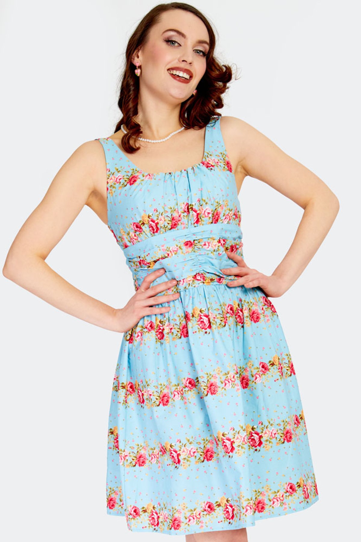 Unleash your inner vintage diva with this purrfectly charming blue floral flare dress. Its playful yet polished silhouette features a flattering ruched waist and a sweet square neckline, all wrapped up in a delightful floral print kissed with pink petals. Designed to make you look claw-some and feel fabulous, this dress is a true ode to timeless 50s elegance with just the right hint of mischief. Whether you’re feeling flirty or fierce, this piece effortlessly blends retro glam with modern ease, making every moment feel a little more fabulous.