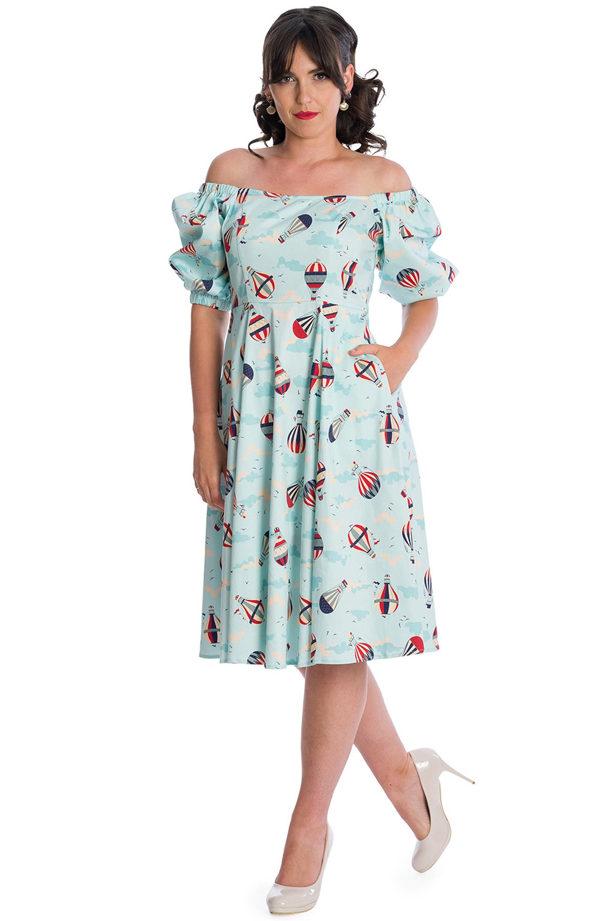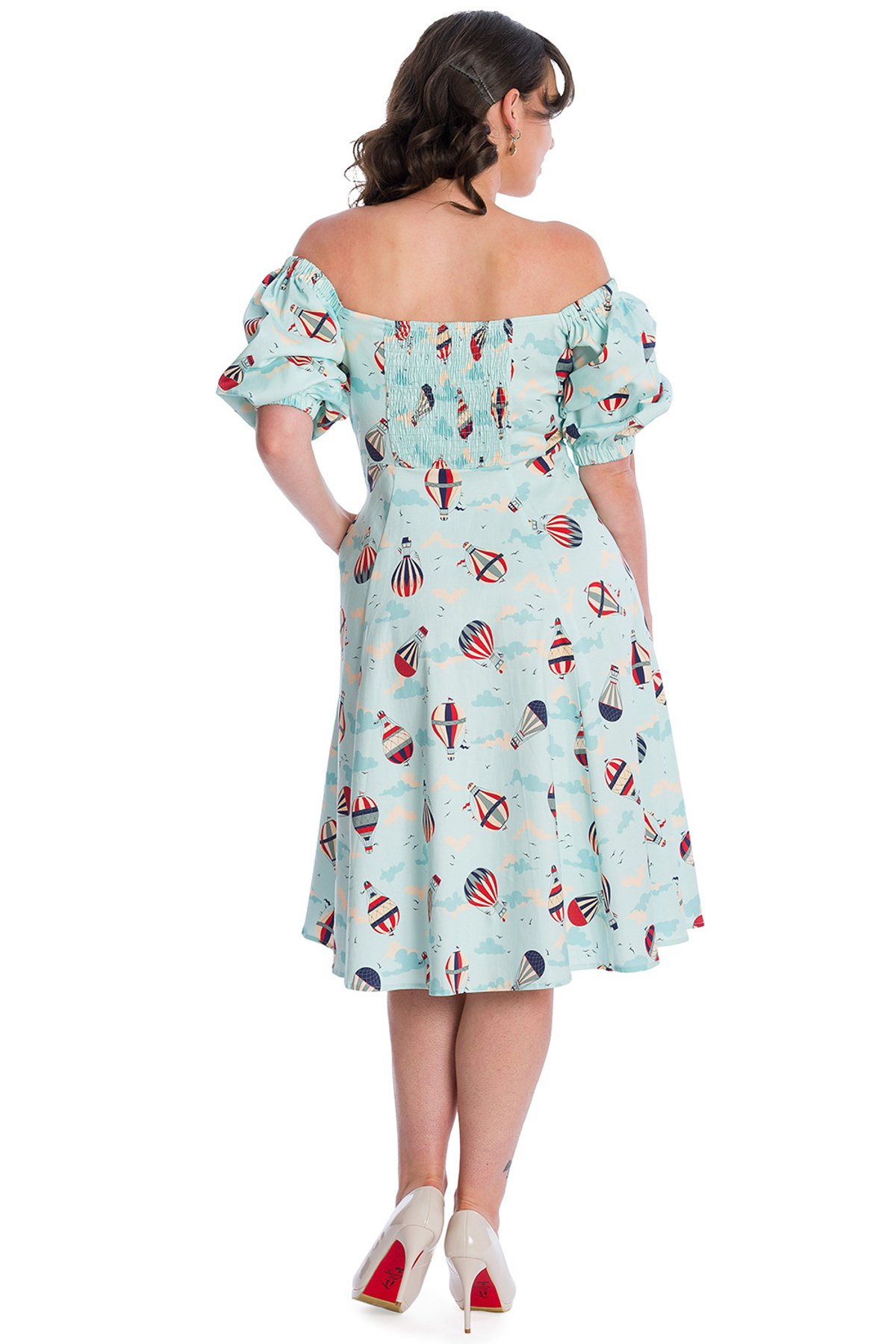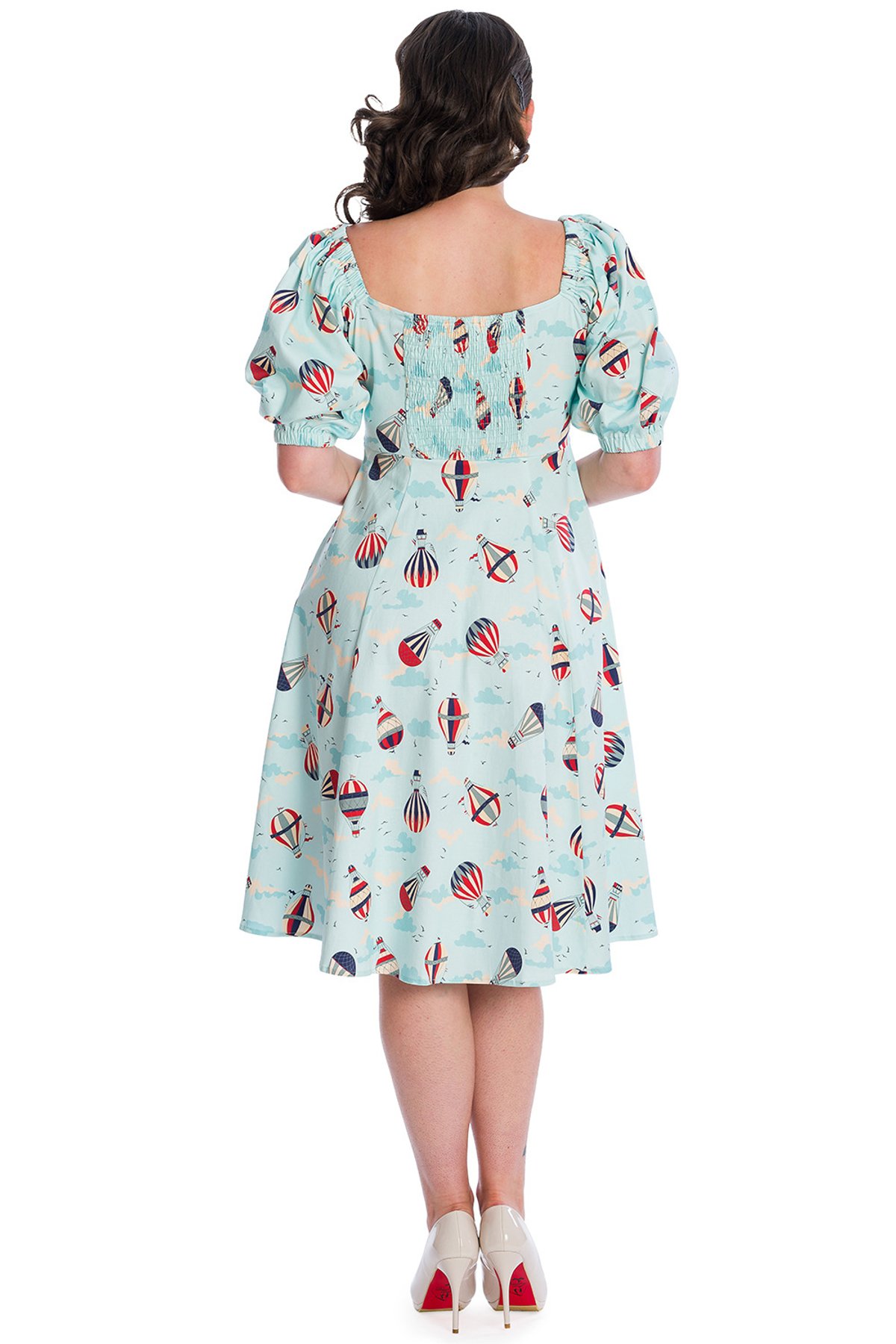 Get ready to turn heads in this purrfectly charming vintage globe dress, where playful hot air balloons drift across a soft light blue canvas. With a silhouette that whispers retro elegance and a splash of fun, this dress is a true showstopper. The vibrant red accents add just the right touch of flair, ensuring you look both chic and whimsical. Crafted from a comfy cotton-elastane blend, it moves with you, whether you're strolling through a garden or dancing the night away. This piece is a delightful nod to the fabulous 1950s, but with a modern twist that keeps it fresh and feline-fabulous.