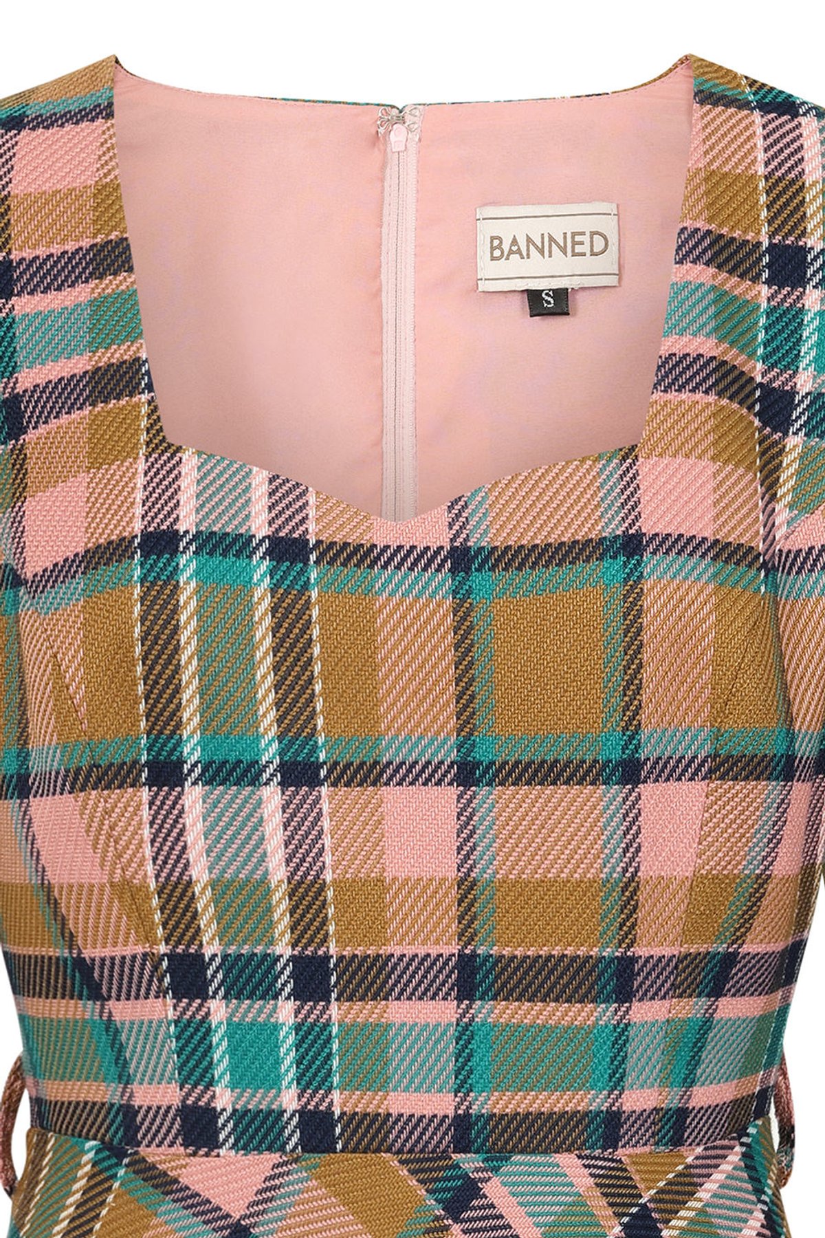 Step into scene-stealing style with the Blush Harriet Plaid Dress—a delightful blend of vintage charm and modern flair. Its sweetheart neckline, flirty fit-and-flare silhouette, and charming plaid pattern in blush and teal hues make it a true purrfect choice for those who love to turn heads. With elegant elbow-length sleeves and cozy side seam pockets, this dress strikes the perfect balance between playful sophistication and practical ease. Crafted from a soft, comfortable fabric blend, it invites you to twirl and strut with effortless grace, whether at a retro-themed party or a sunny brunch date. A true wardrobe staple for those who appreciate classic details with a contemporary twist, this dress is as versatile as it is utterly gorgeous—claws-down, a must-have for vintage lovers and modern muses alike.