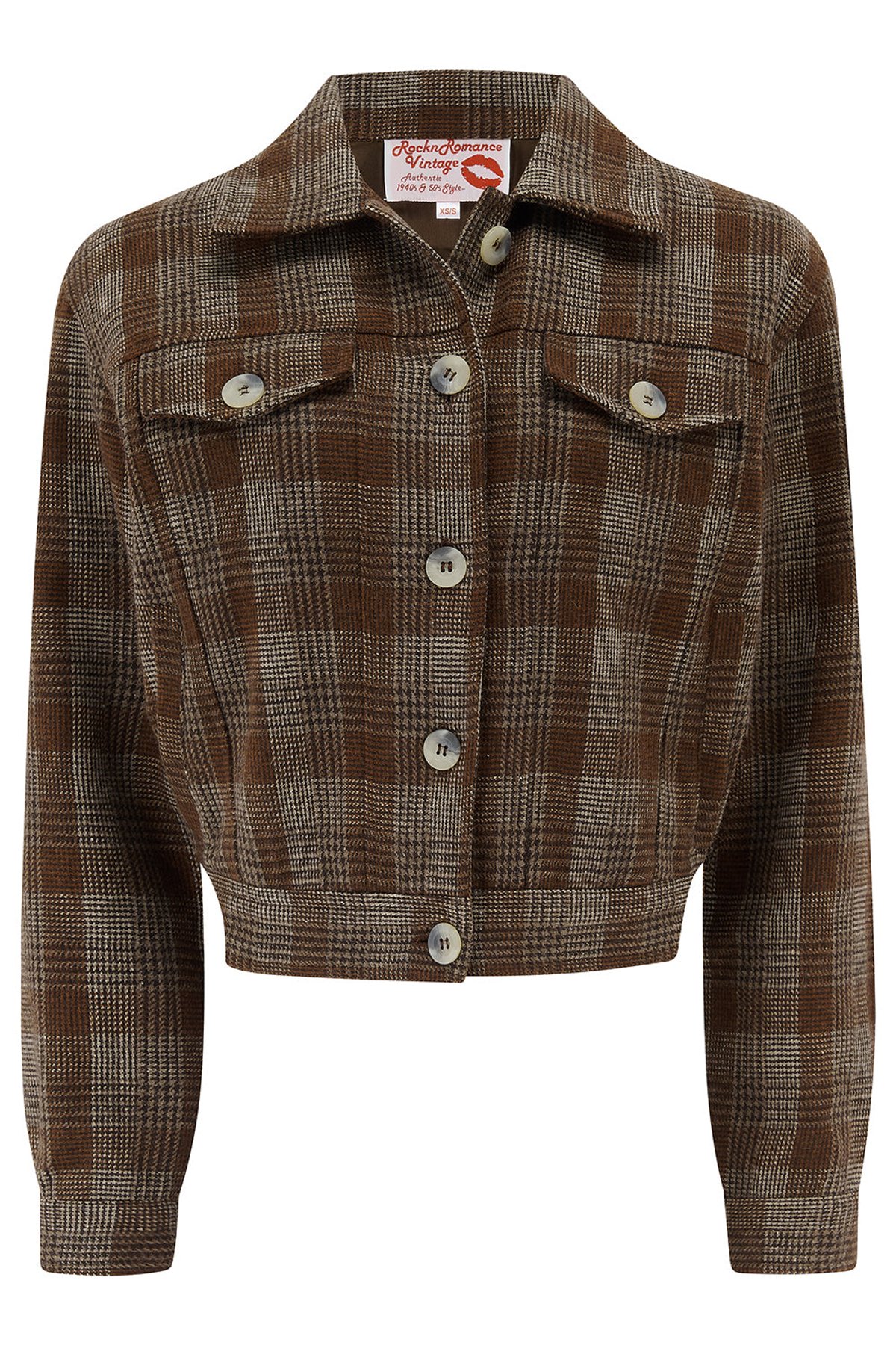 Meet your new style sidekick: the Girl Next Door Ricky Jacket in its classic brown plaid check. Crafted from 100% wool, this purrfect vintage-inspired piece oozes 1950s retro flair with a modern twist. Its semi-cropped silhouette and elasticated back hem create an irresistibly flattering hourglass shape, making you look pawsitively gorgeous. Whether you're aiming for a laid-back rockabilly vibe or a pin-up pinacle, this jacket is your go-to for effortless chic—claws-down, undeniably stylish.