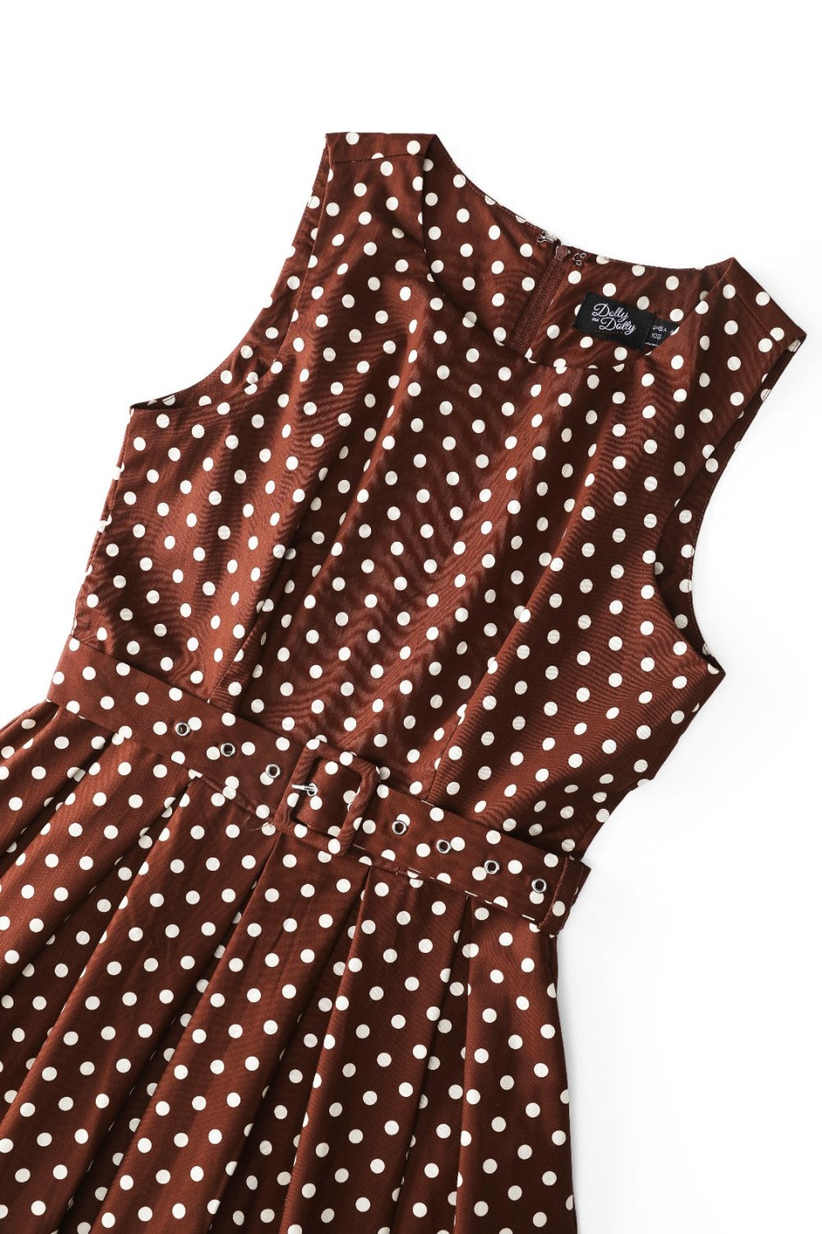 Shop at Kitty Darling 🐈, your trusted UK retro boutique, and slip into this timeless Brown Polka Dot Midi Dress. It’s not just a look, it’s an emotion – an invitation to immerse yourself in nostalgia and charm. Remember, give it the care it deserves: wash between 30-40 degrees and steer clear of the tumble dryer 🌬️. Snap up this retro gem 💎 today and bedazzle with timeless elegance.