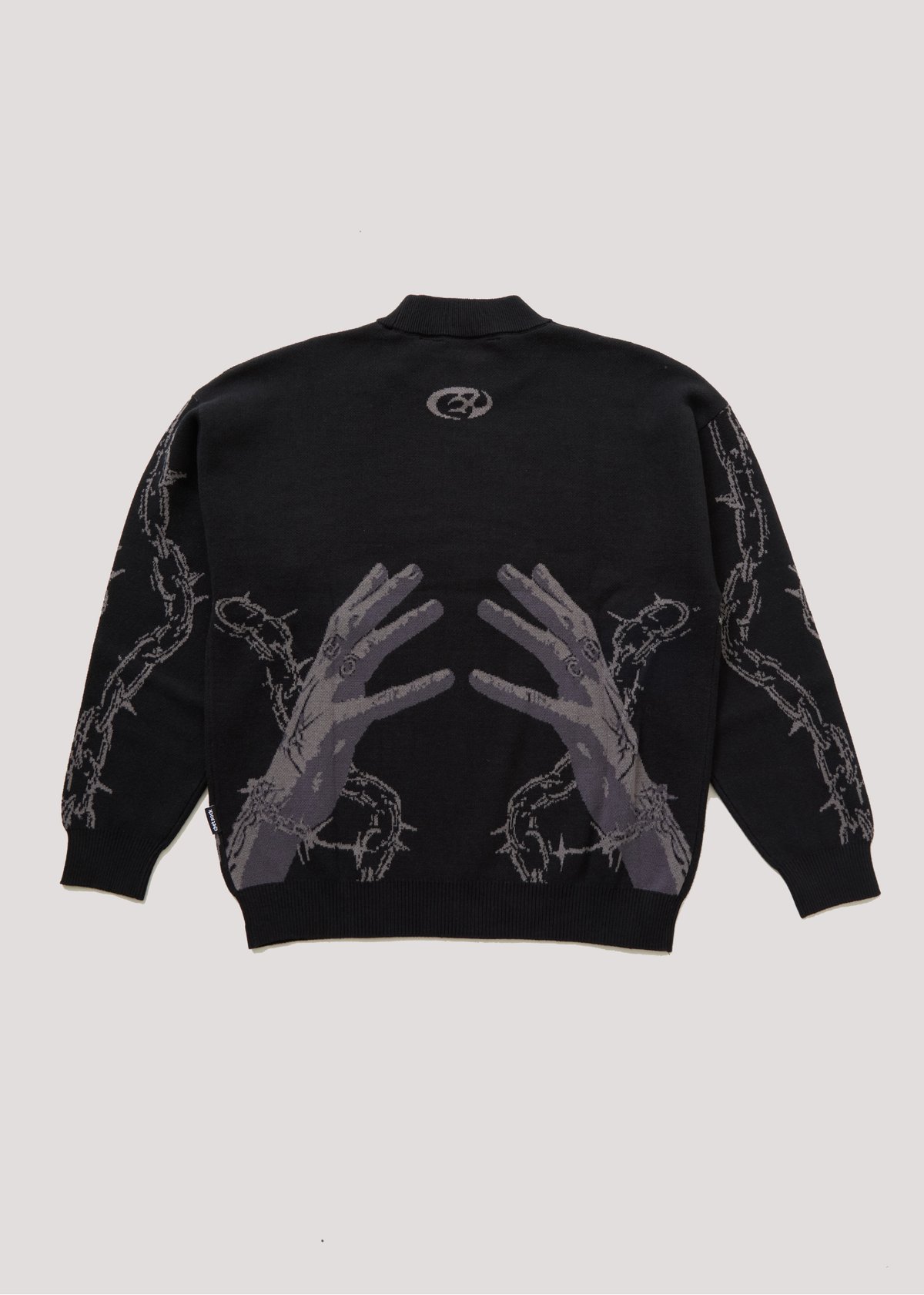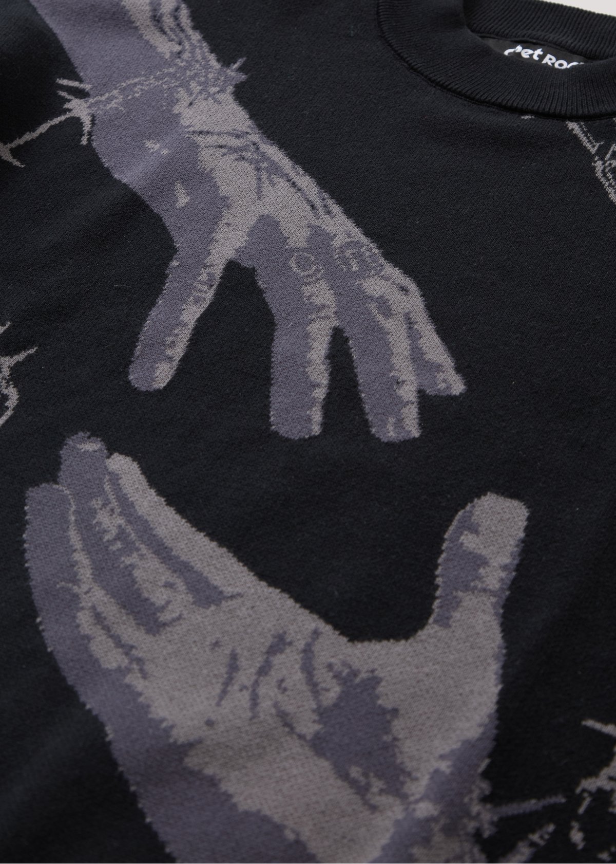 Unleash your inner rebel with the Break Free Hand Jumper—where bold monochrome prints meet a chunky, oversized silhouette for a look that's undeniably claws-down gorgeous. Featuring striking reaching hands intertwined with barbed wire, this jumper screams punk attitude while keeping you cozy with its heavyweight, soft-touch fabric. Whether you're making a statement on the city streets or just lounging in style, this piece is a true showstopper that invites you to stand out from the herd.