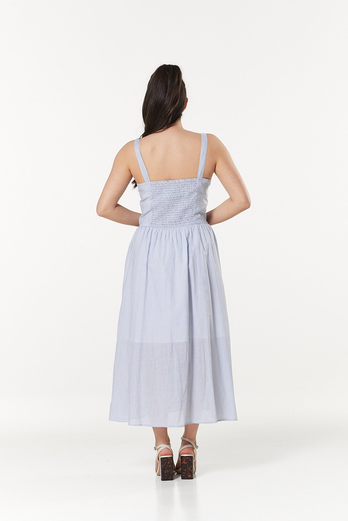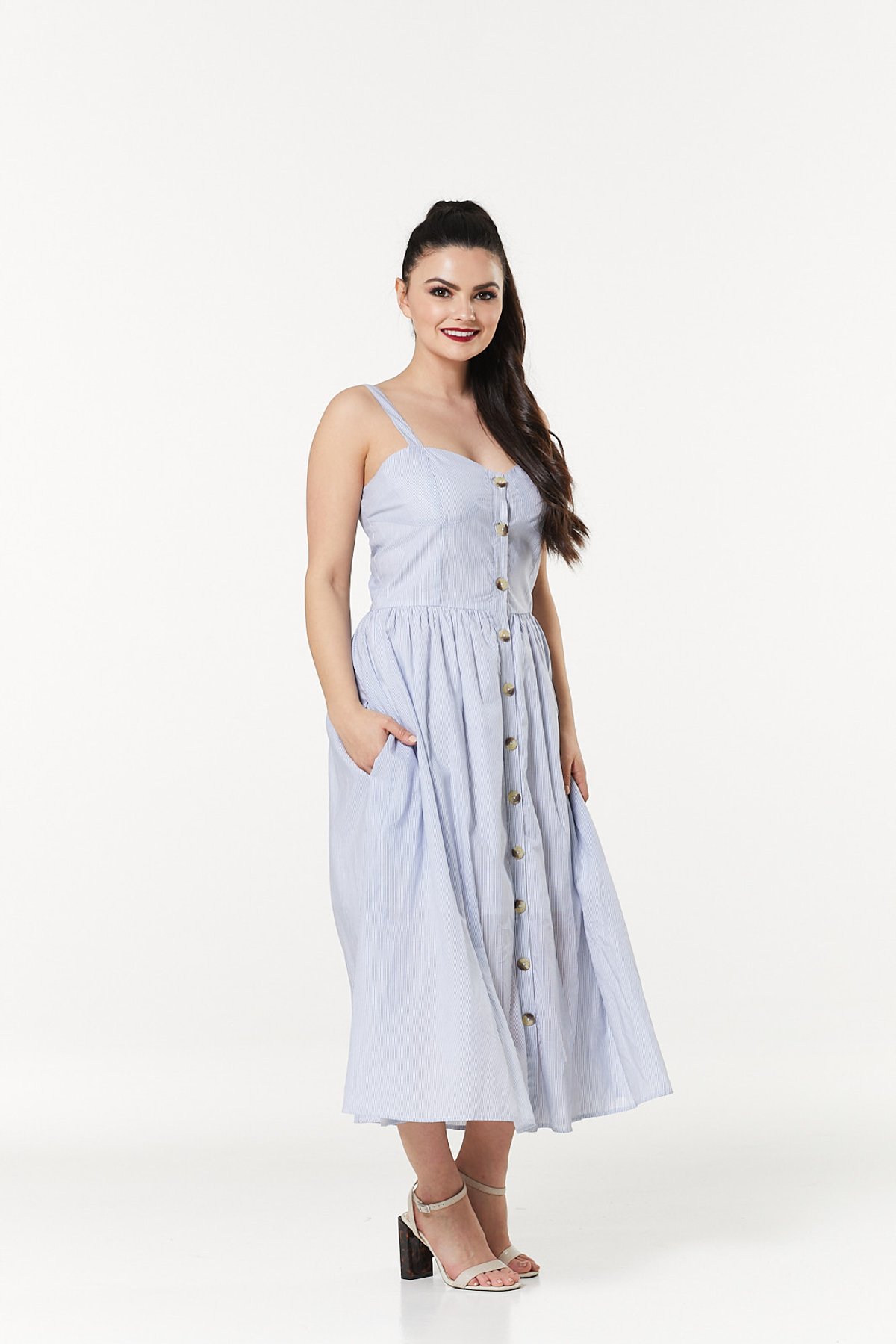 Step into the sunshine with a dress that’s as charming as a kitten’s purr. The Cecilia Dress caresses you with its delicate vertical stripes in soft white and baby blue, offering a *purrfect* blend of vintage allure and modern grace. Its flowing maxi length and classic button-up detail make it a timeless piece that’s ready to elevate your wardrobe with just a hint of playful sophistication. Whether you’re feeling retro-chic or casually elegant, this dress is your go-to for effortless style that’s *claws-down* gorgeous.