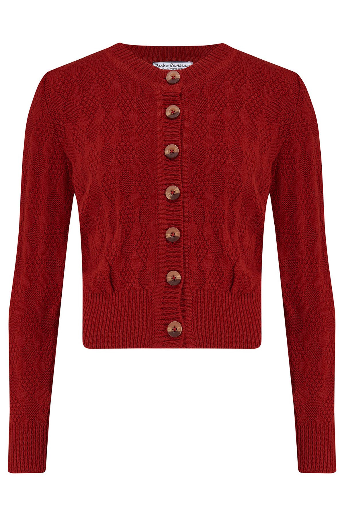 Unleash your inner vintage diva with the Sandra Textured Diamond Knit Cardigan in a vibrant cherry red that’s as purrfect as a feline’s midnight prowls. The textured diamond pattern adds a touch of sophisticated playfulness, while the charming wooden buttons give it a nostalgic, yet modern flair. Whether draped over a retro dress or paired with your favorite jeans, this cardigan knows how to turn heads—and claws—your way.