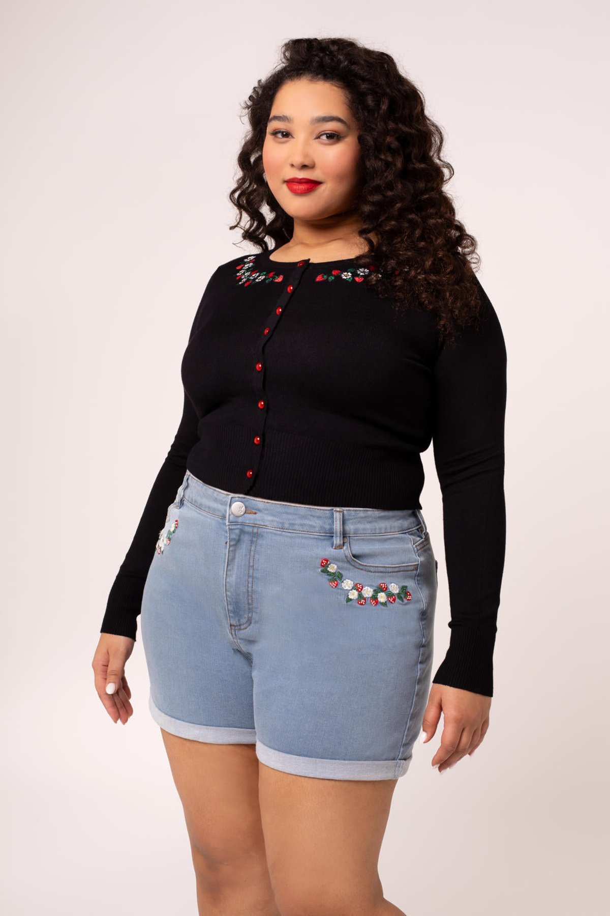 Pounce into the new season with a pair of shorts that are as playful as they are chic! The Francoise Shorts boast a charming splash of embroidery featuring strawberries and daisies—just enough to make your look irresistibly purrfect. The soft, stretchy denim hugs your curves in all the right places, while the rolled hem adds a relaxed, laid-back vibe. Whether you’re soaking up the sun or enjoying a casual day out, these shorts are sure to make a paws-itively stylish statement.