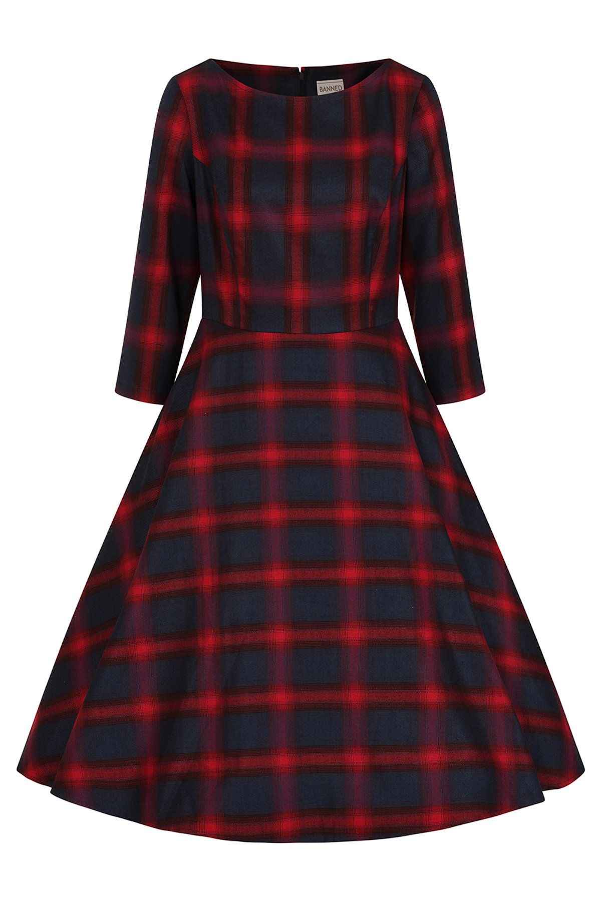 Step into the spotlight with our Red/Blue Barbara Christmas Checks Swing Dress — a true purrfect blend of retro charm and holiday cheer. Its lively checks pattern, reminiscent of vintage holiday parties, is accentuated by a flattering swing silhouette that promises to turn heads and twirl hearts. The full-circle skirt invites you to dance, while the classic boat neckline and 3/4 sleeves add just the right touch of elegance. Crafted with a cozy yet stretchable fabric, this dress will keep you comfy whether you're mingling or midnight dancing — it’s a festive must-have that’s as playful as it is chic.