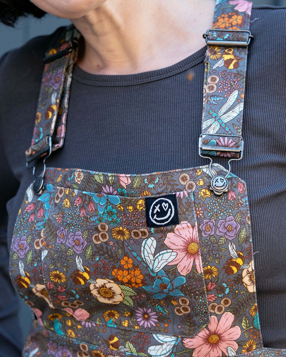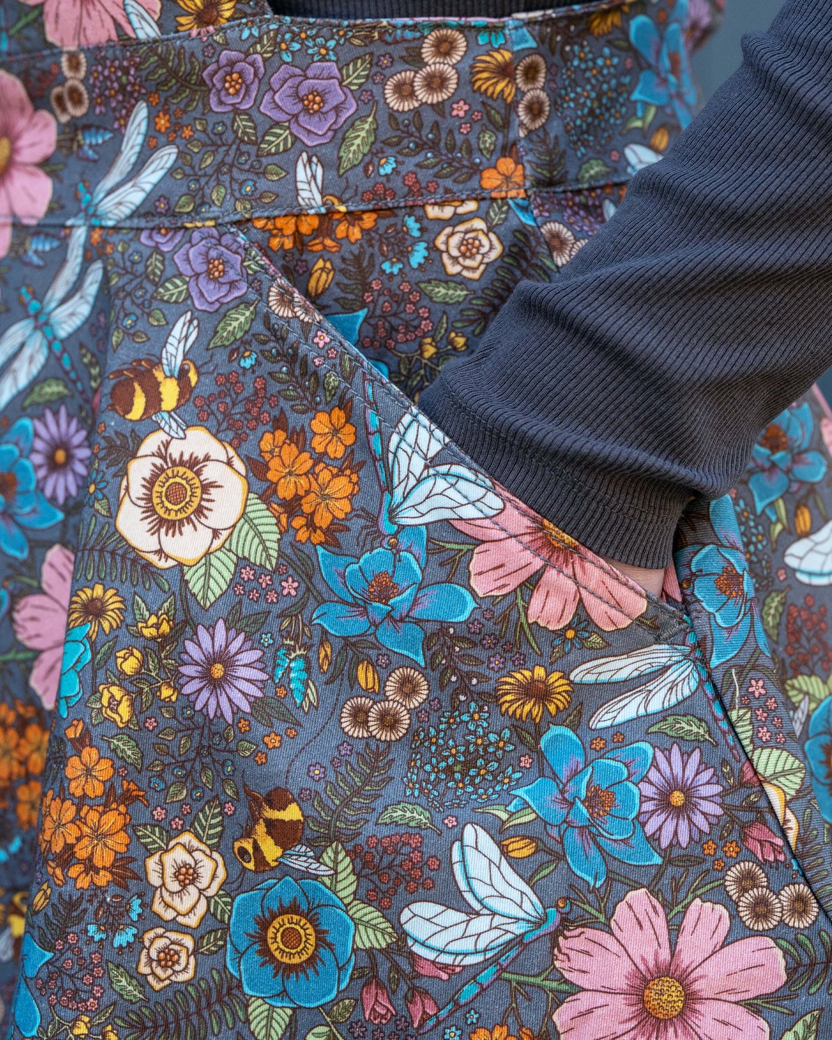 Set on an earthy-brown canvas, the dress bursts with a delightful print of blossoming florals, busily buzzing bees, and carefree dragonflies. A product of soft, stretchy twill, this dress is a promise of both comfort and splendour, smoothly transitioning you through all seasons.🌱🍂