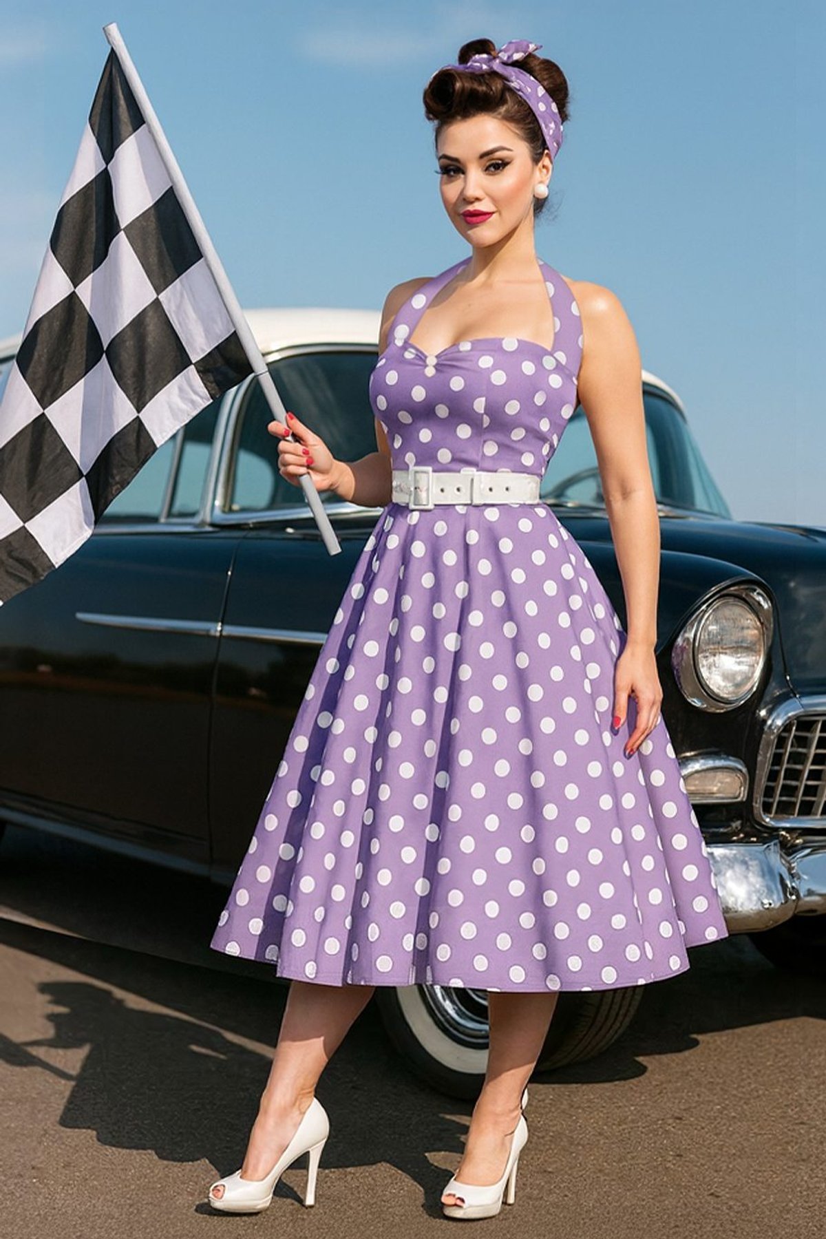 🎀 Unveiling our Daisy Lilac Polka Dot Dress – the perfect blend of sass and class! This lovely halter dress is all charm, echoing 1950s rockabilly fashion. 🥳