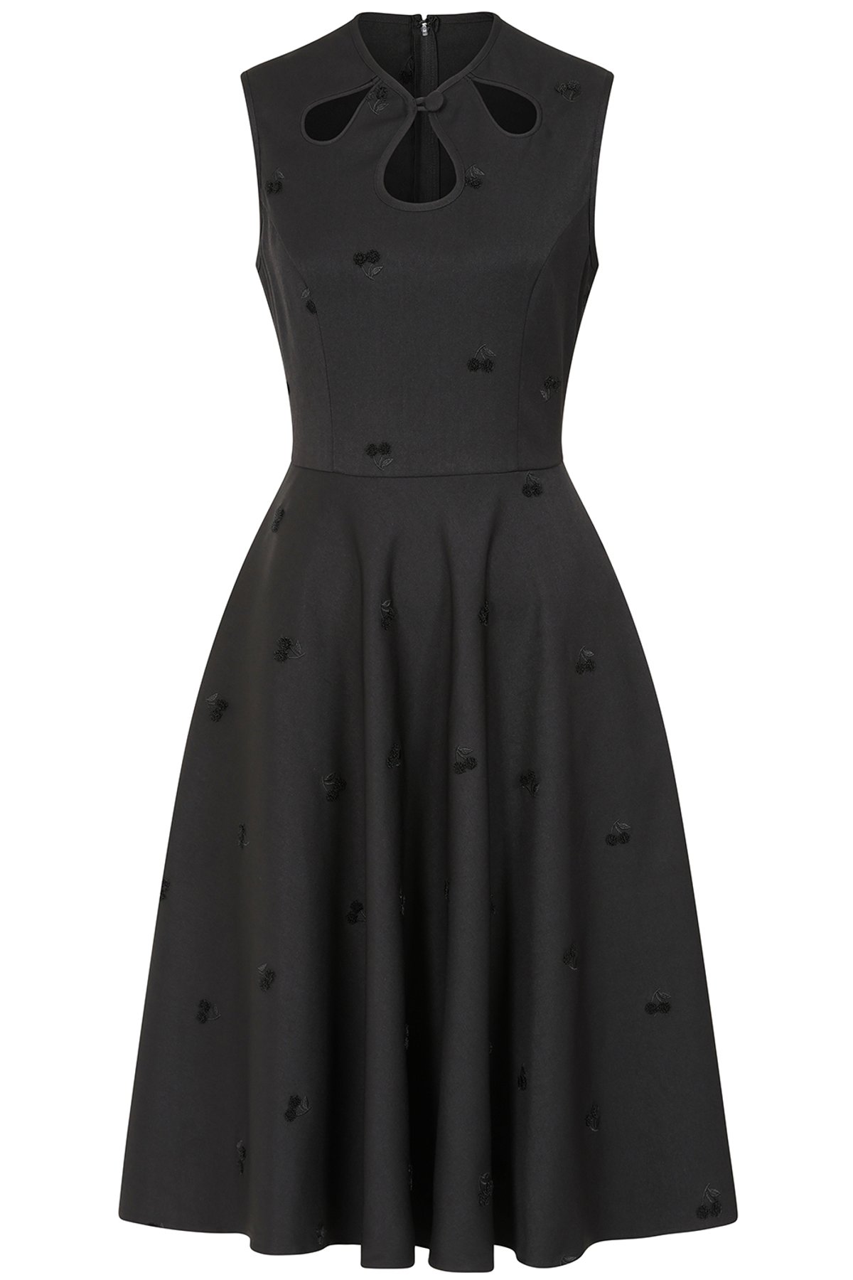 Our classic Daisy dress is back in a beautiful black woven fabric with cherry embroidery. This Banned apparel 1950’s inspired fit and flare dress is flattering & perfect for a special event. This sophicated & elegant silhouette is a classic and staple in any retro lovers collection!