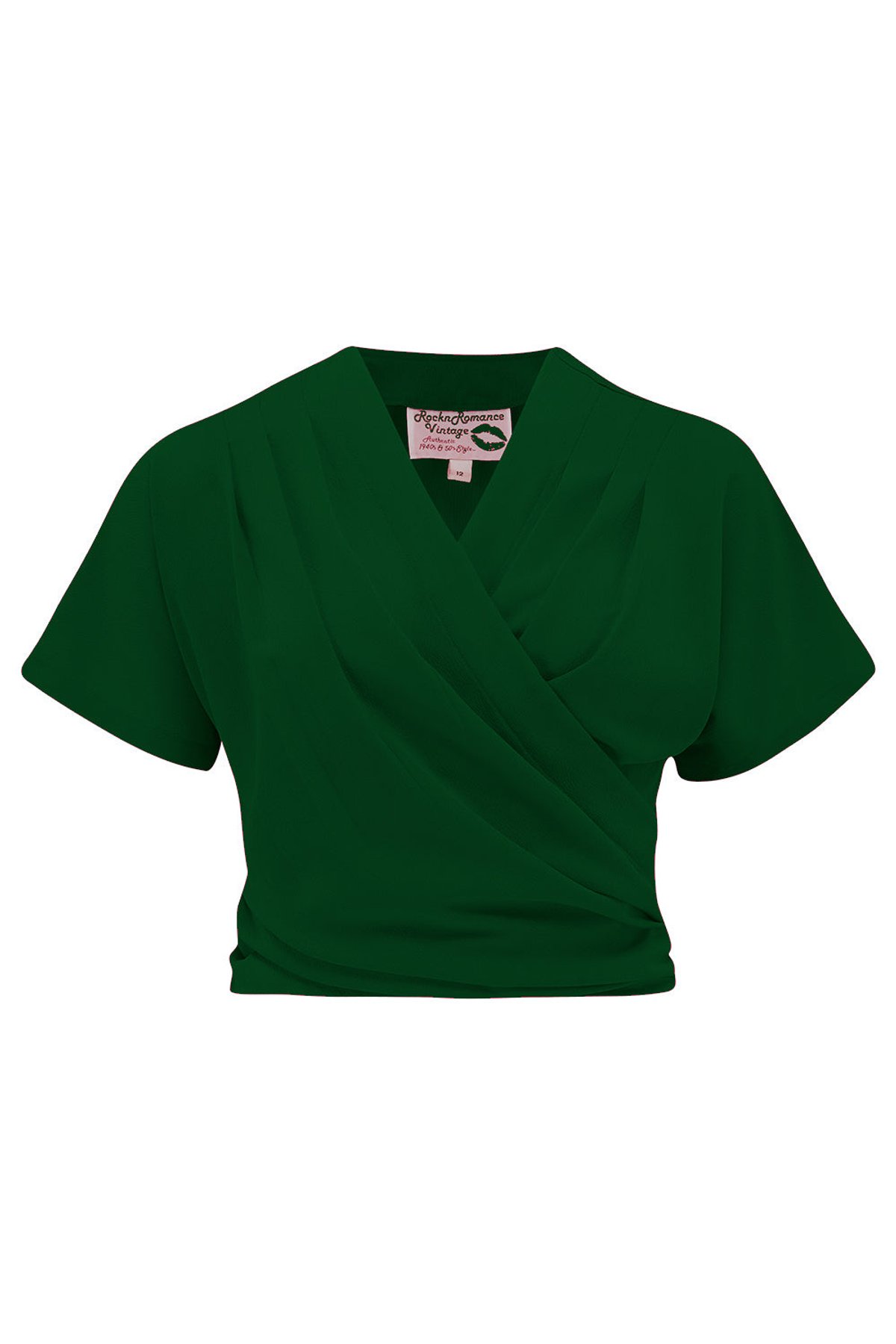 Unleash your inner pin-up or modern muse with the Darla Short Sleeve Wrap Blouse in a lush, vibrant green that’s simply purrfect for turning heads. Its retro-inspired silhouette, complete with a flattering wrap design and charming front pleats, keeps you looking effortlessly chic—whether you're out for brunch or dancing the night away. Crafted from silky-smooth poly crepe, it drapes with divine ease, offering a look that’s both vintage vixen and contemporary darling. The versatile hue and timeless cut make this blouse a true wardrobe staple, ready to elevate any ensemble with a sprinkle of feline finesse. Whether styled with a sassy pencil skirt or your favorite jeans, the Darla is here to purrfect your style game with a touch of vintage glamour.