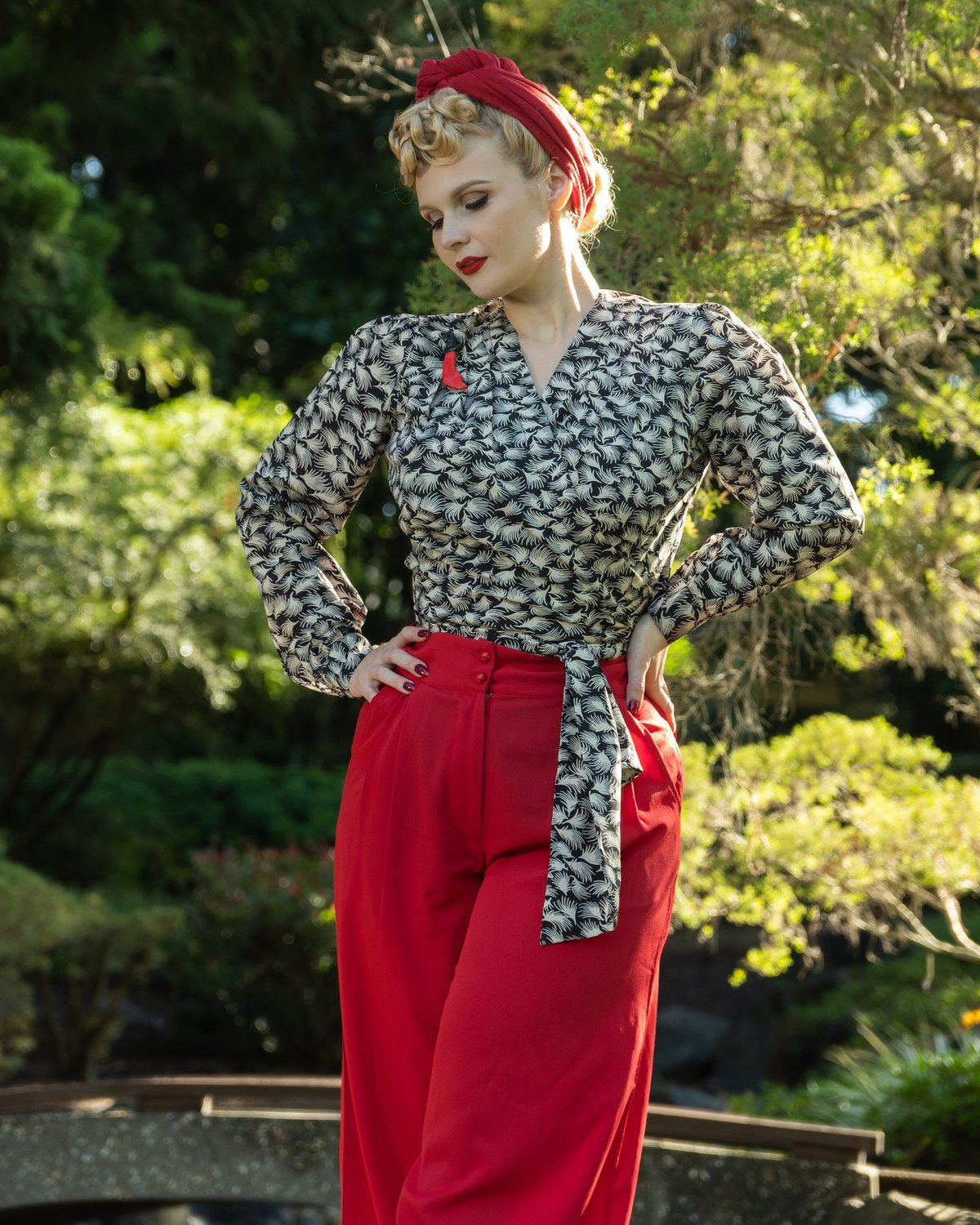 Decked in an abstract black and white pattern, this blouse adds a taste of elegance to any ensemble, be it skirts, trousers, or your favourite pair of jeans. A cheeky nod to 1950s rockabilly fashion, this blouse is crafted from super soft and easy-care Poly Crepe. 👗
