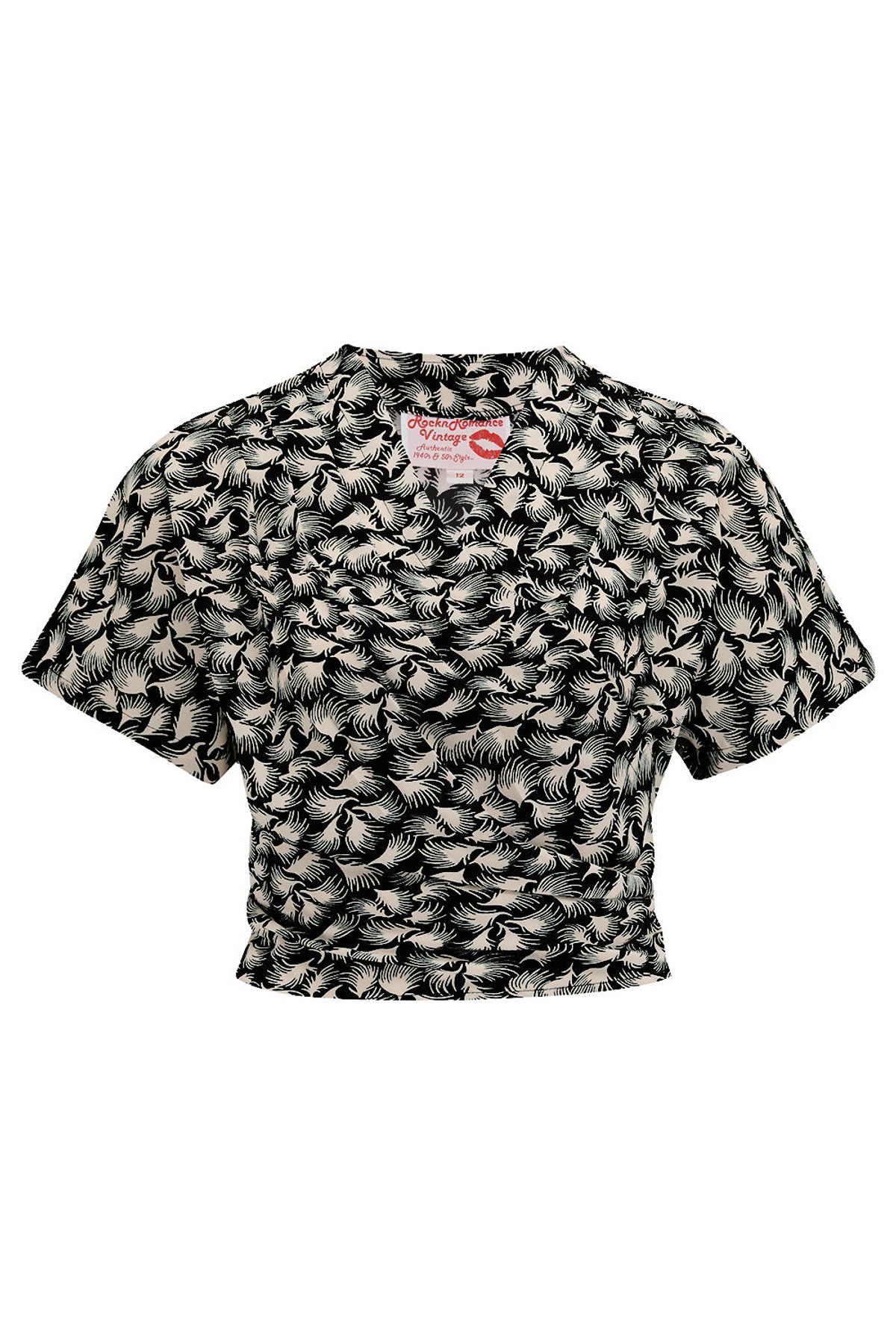 Introducing the Darla Short Sleeve Wrap Blouse in Black Whisp: a purrfect blend of vintage allure and modern chic. Its delicate floral print, combined with the flattering wrap silhouette, offers a silhouette that's claws-down gorgeous. Crafted from authentic Poly Crepe, it drapes gracefully, giving you that effortlessly elegant vibe — whether tied at the front for a playful touch or at the back for a sleek finish. This blouse is a true chameleon, whispering vintage charm while remaining utterly versatile for your wardrobe.